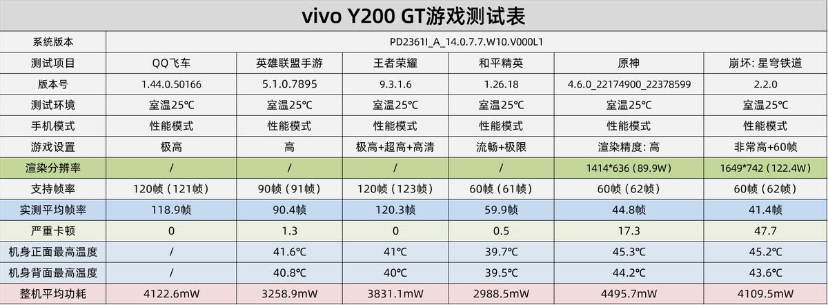 整体来看,vivo Y200 GT日常使用是OK的,应对王者、吃鸡完全够用,但对于原神、星铁这种高负载的游戏,压力确实很大,跟我们之前的测试结论完全一致,想要流畅运行的话建议调到中画质,最好再搭配一个散热背夹。