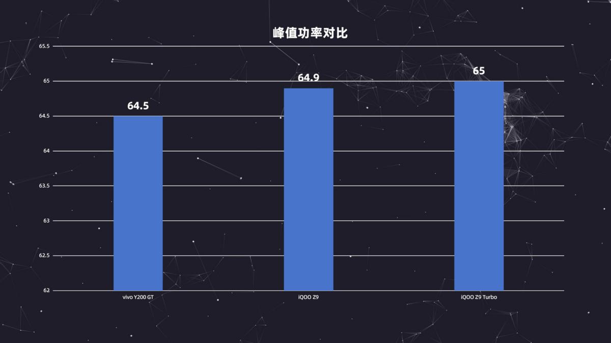在超快充电模式下进行实测,峰值功耗可以上到64.5W,与我们之前测的iQOO Z9系列非常接近。