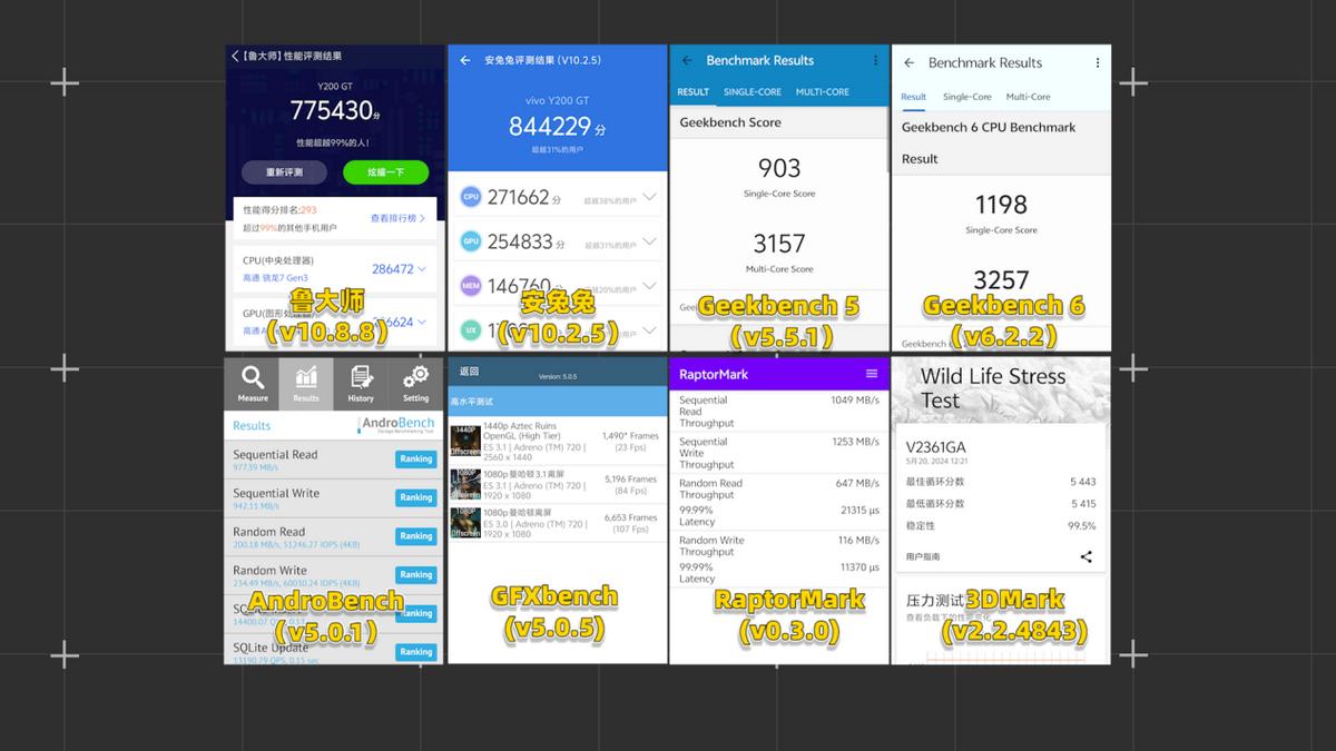 在性能上,vivo Y200 GT搭载的是骁龙7 Gen3芯片,这是我们非常熟悉的老朋友了,蓝厂自家的vivo S18、iQOO Z9用的都是同款芯片,黑厂的OPPO K12用的也是它,之前都跟大家分享过非常详细的评测内容,这堪称是劳模了吧。