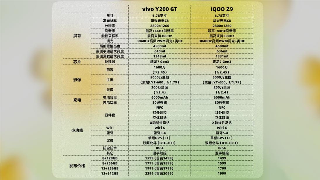 那为啥还要分出来两种型号呢?主要还是定位不同,Y200 GT是主攻线下的产品,iQOO Z9主要还是线上。