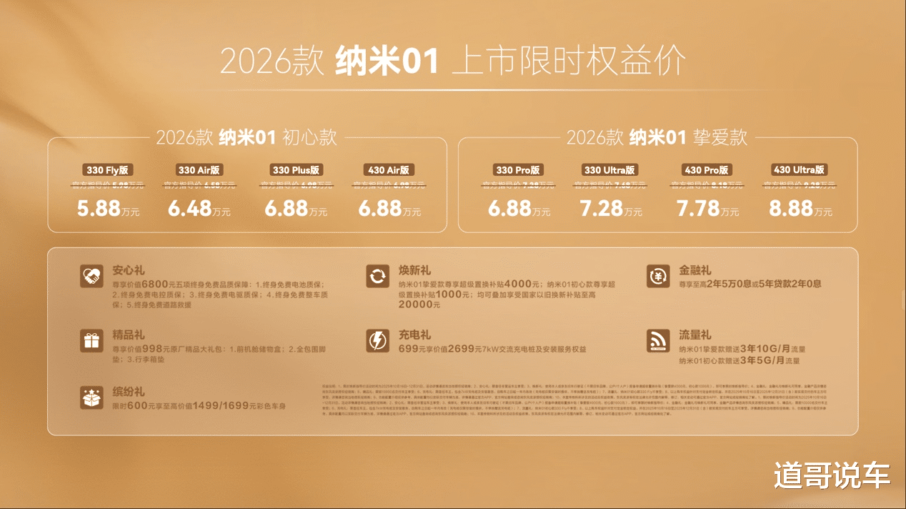 【文/财圈社&道哥说车 张浅 】在当下多元化的出行场景中,消费者对汽车的需求早已超越了简单的代步功能,而是延伸为对生活品质、情感共鸣与个性表达的深度追寻。10月16日,东风奕派以“十万严选、共赴美好”为主题,同步推出了2026款纳米01与2026款eπ008五座版两款焕新车型,以限时惊喜价5.88万元起与15.99万元起,精准切入“精致独享”与“温馨共享”两大细分市场。这不仅是一次产品线的扩充,更是品牌对用户多样化生活方式的深刻回应,旨在通过差异化的产品力,让每一段旅程都成为值得回味的体验。