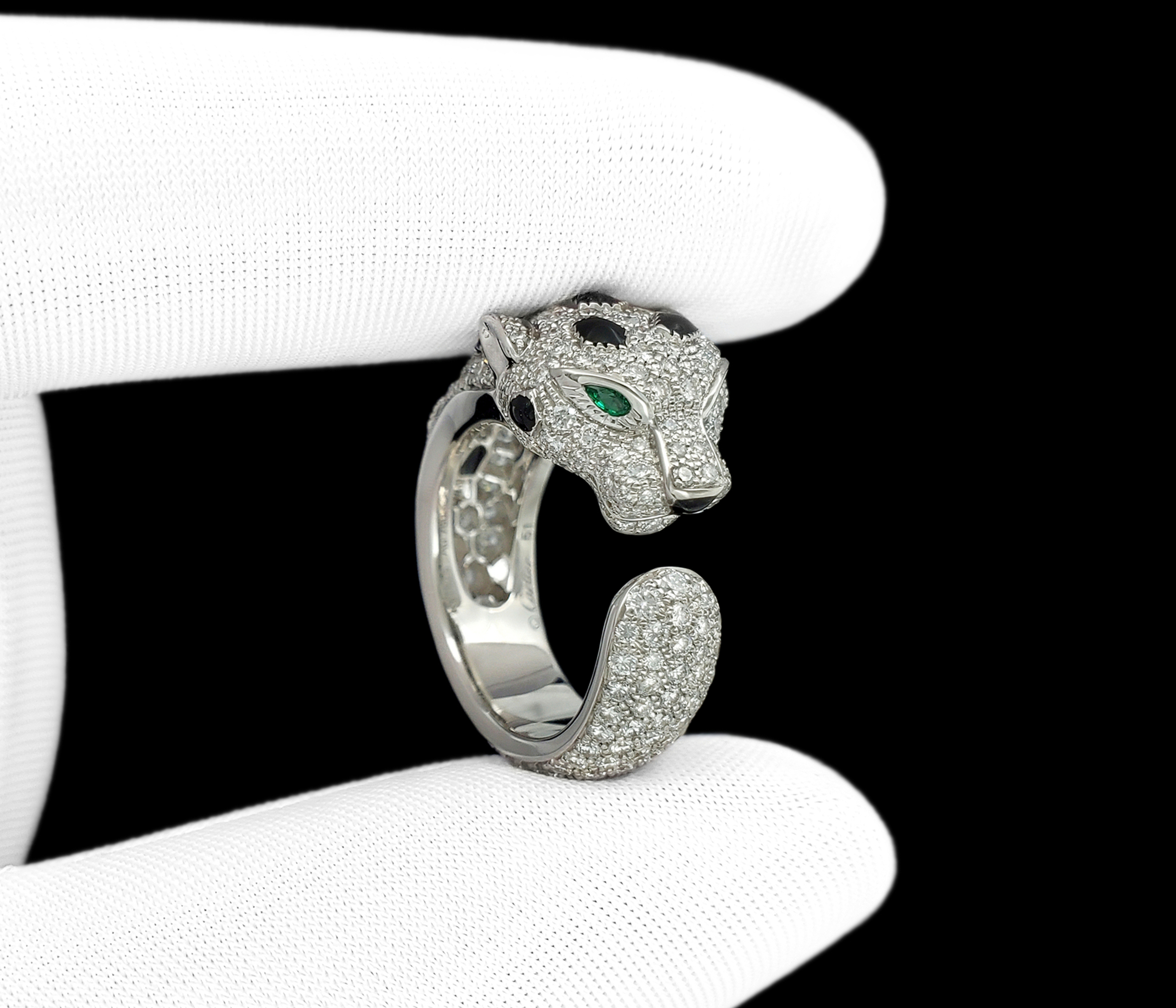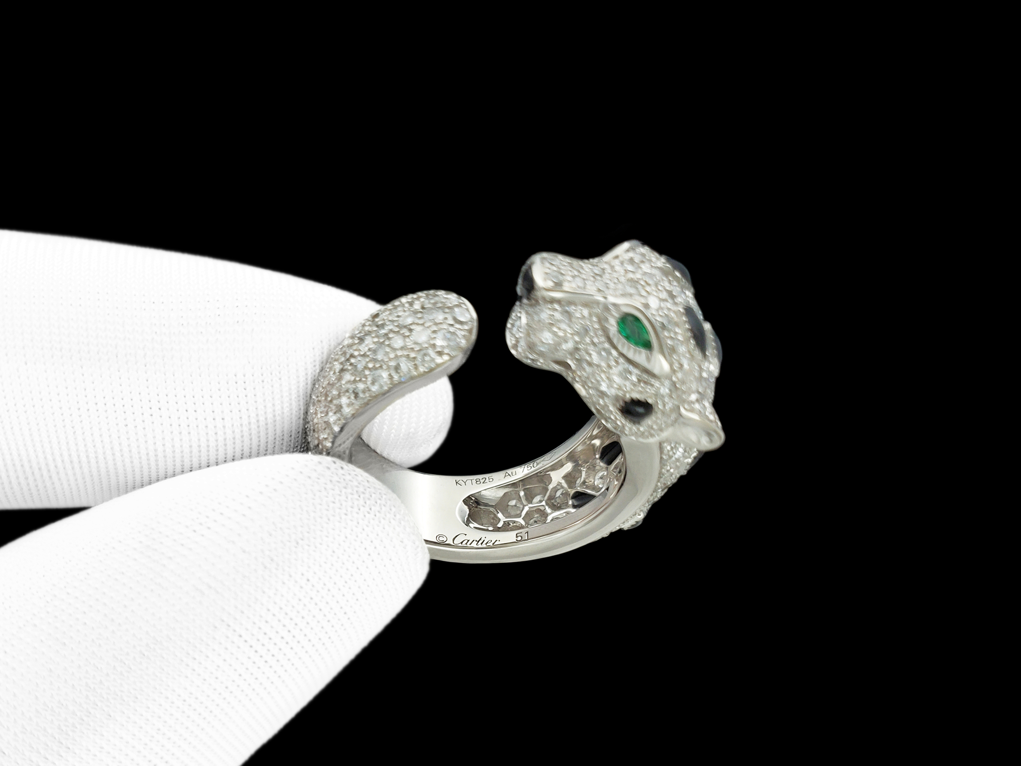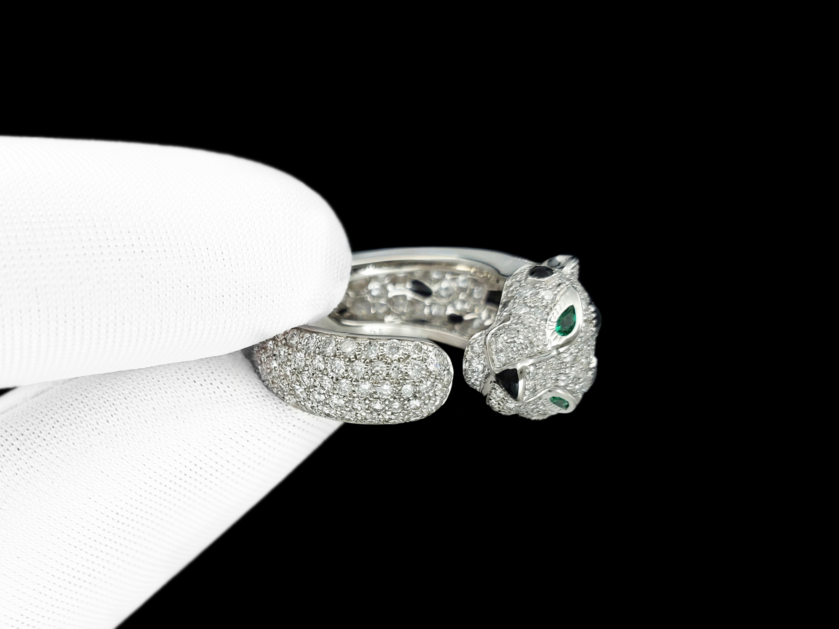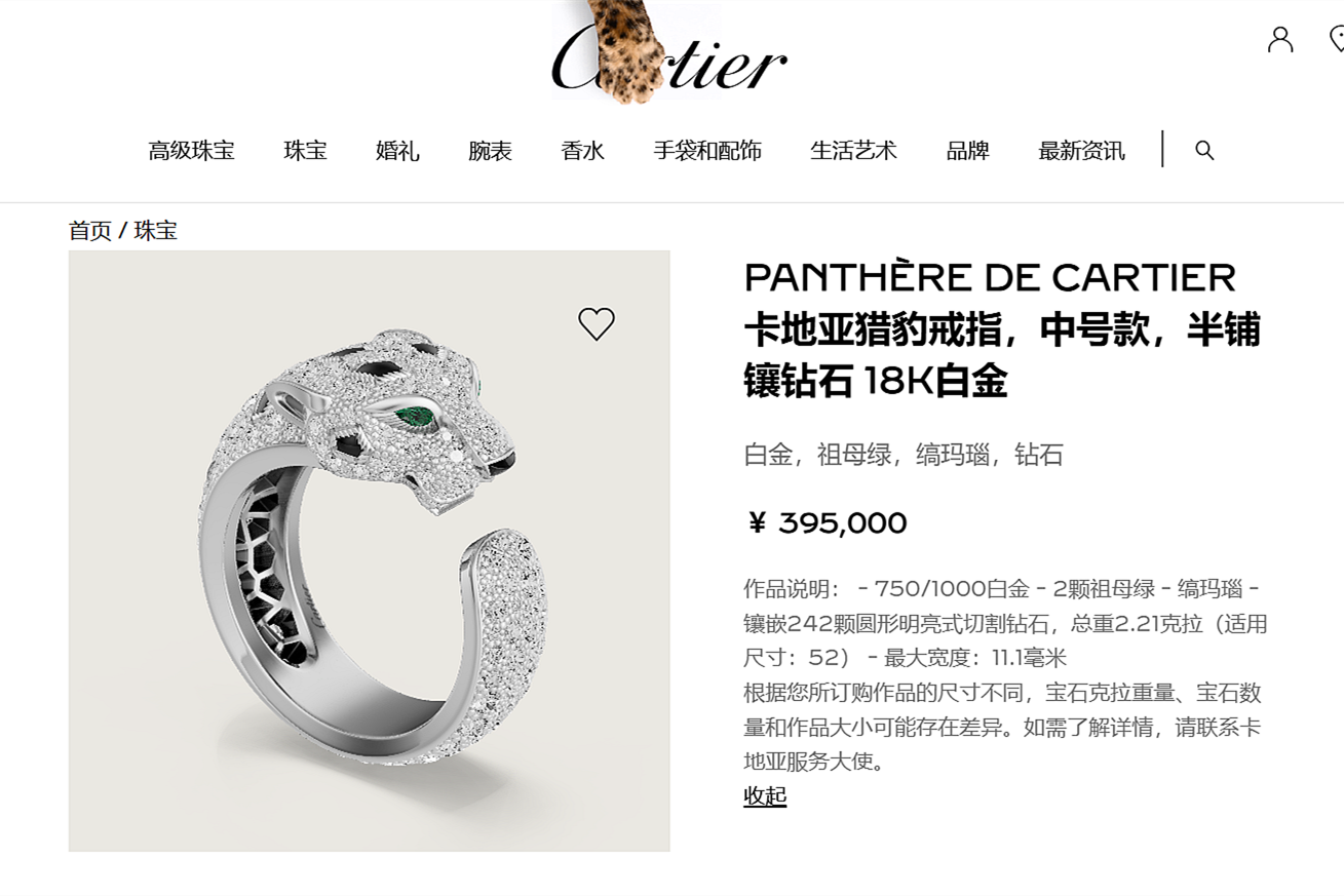 Cartier卡地亚pathere猎豹系列18K白金满镶钻石中号款猎豹戒指
