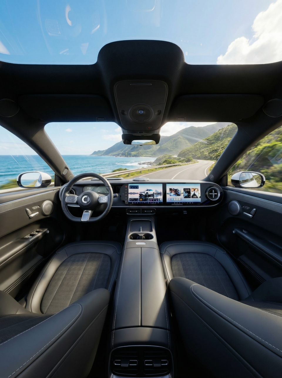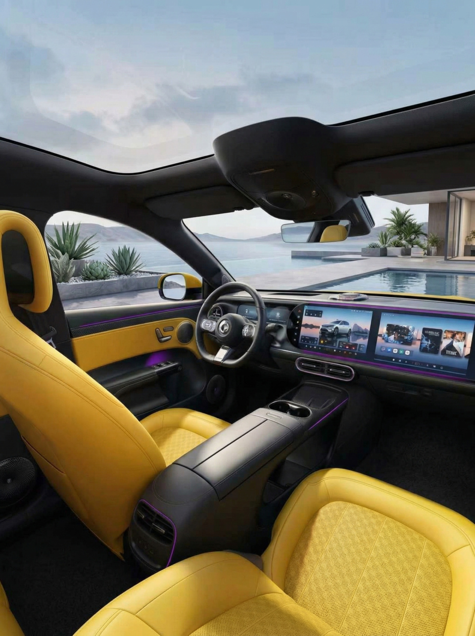 全新smart精灵6号座椅纹样整体对称,但孔型大小存在微妙变化。门板金属膜片的光泽随视角流动,打破了静态对称。秩序感里藏