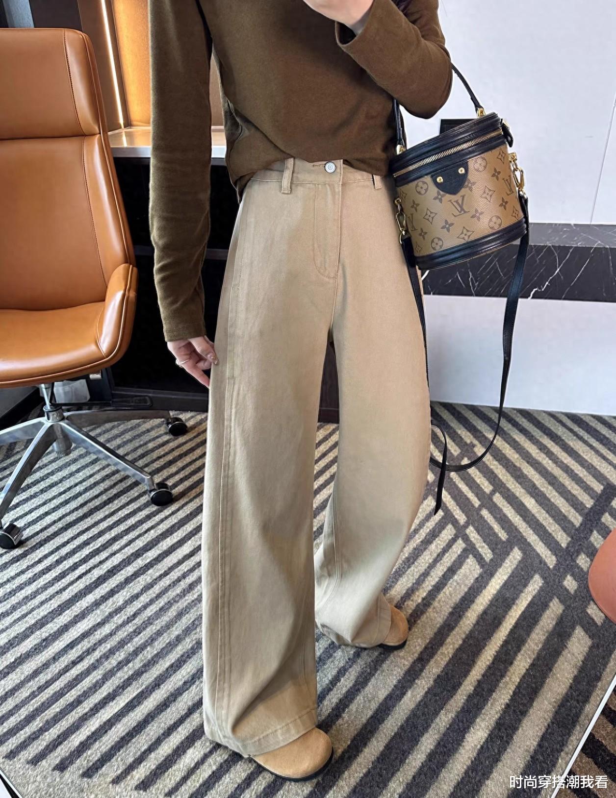 更重要的是,现在卡其色牛仔裤在版型上做了升级。宽松的裤腿设计对各种身材都很友好,特别是梨形身材的姐妹,能遮住大腿和臀部的肉肉,高腰设计还能拉长腿部线条。