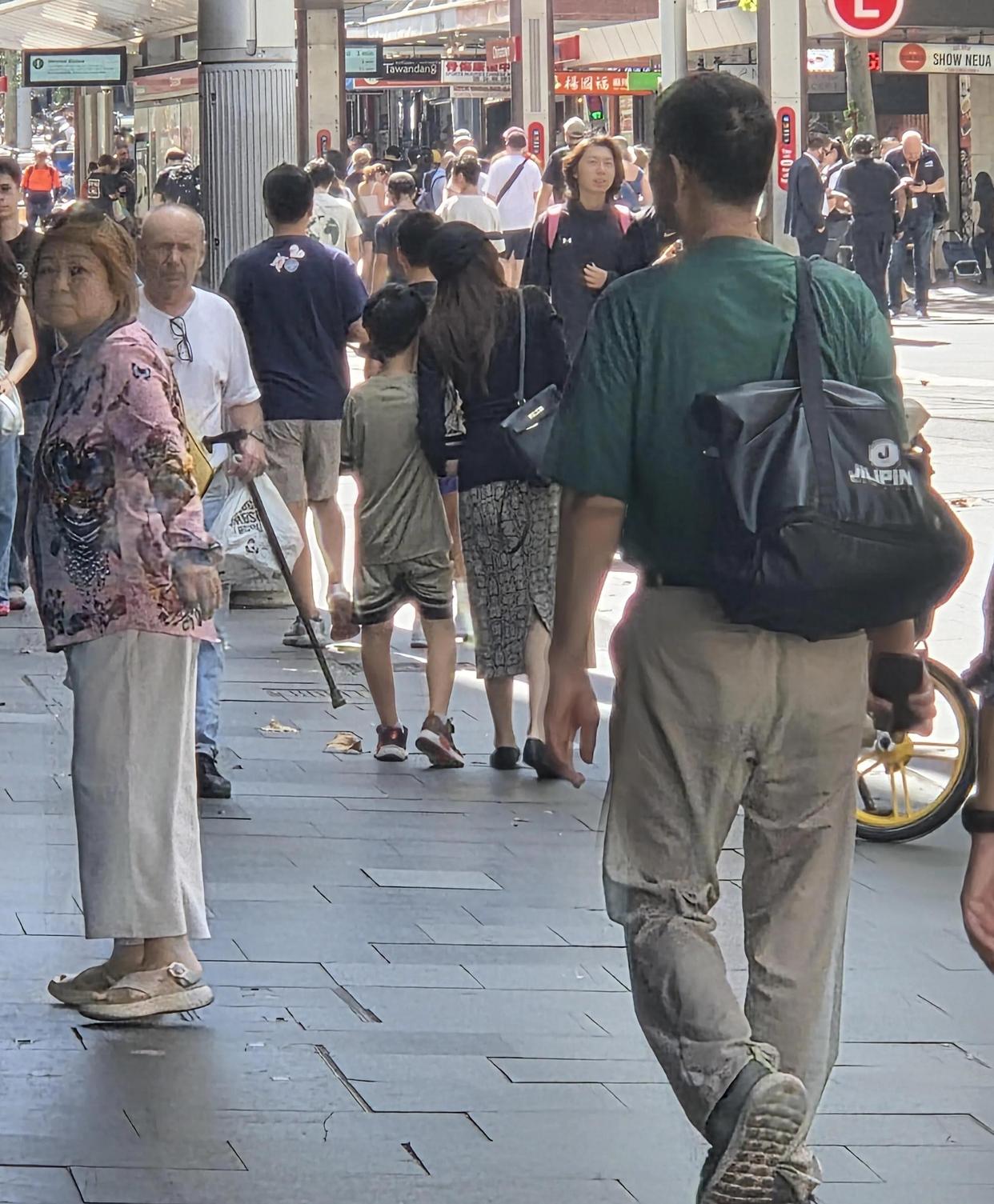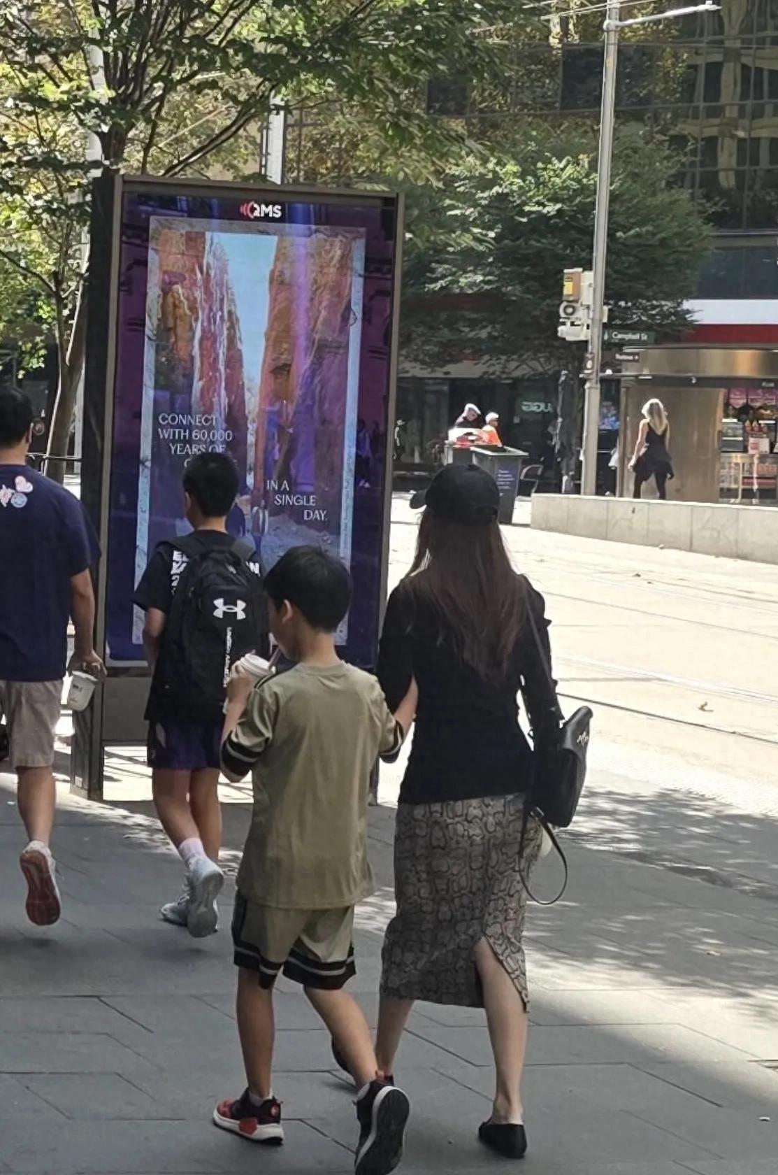 一家四口在悉尼度假,老公黄柏俊和大儿子走在前面,父子俩边走边聊,大儿子11岁,个子都快和妈妈一样高了。 侯佩岑牵着小儿子走在后面,小家伙很黏妈妈。