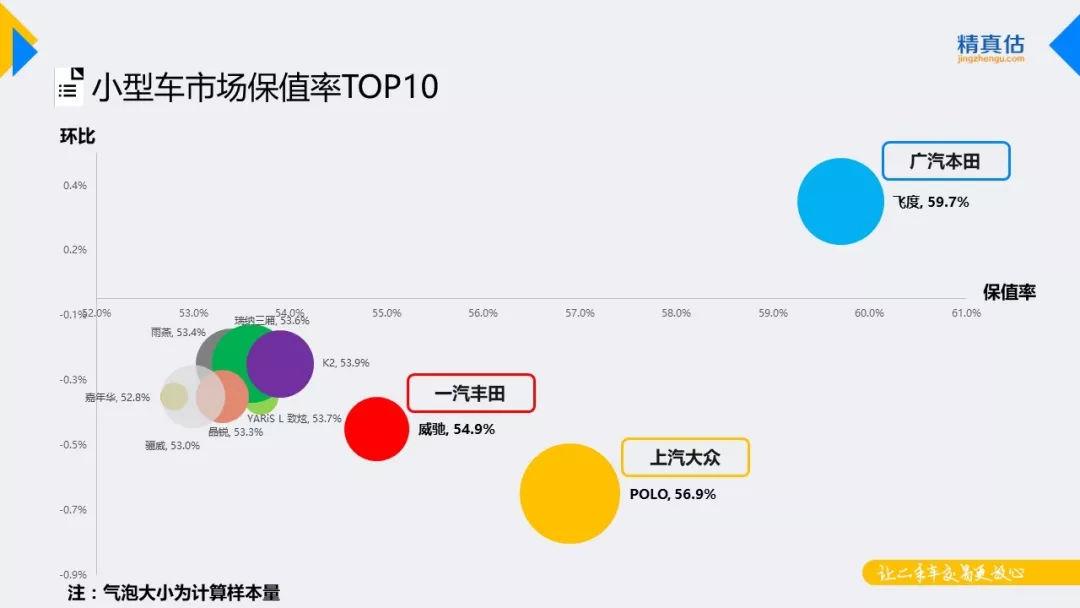 小型车市场受重视程度较低,加之受春节前期以及小排量车购置税减免政策取消的影响,本月小型车保值率整体下滑,但排名基本稳定,飞度、POLO、威驰依旧稳居前三甲。其中,本田飞度本月推出了2018款中期改款车型,产品力提升,终端优惠力度收紧,保值率环比增长,其他车系保值率环比均出现不同程度的下滑。
