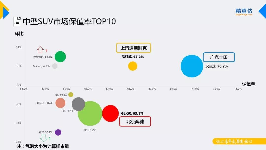 众多豪华品牌的中型SUV在年内将迎来换代或国产,豪华品牌在该级别市场中的竞争也将趋于白热化。本月的中型SUV市场保值率TOP榜单中,排名基本稳定,汉兰达一直难逢敌手,始终以较为明显的优势位居榜首。昂科威作为合资品牌中的黑马,保值率长期稳居第二,GLK虽然已停售但保值率依旧稳居第三。