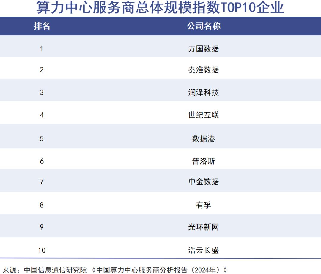 秦淮数据成立于2015年,属于我国超大规模数据中心市场中的扛把子选手。中国信通院发布的《中国算力中心服务商分析报告(2024年)》显示,秦淮数据在集约发展、国际布局和绿色低碳三项评比中斩获第一,总体规模也在全国排名第二,仅次于万国数据。
