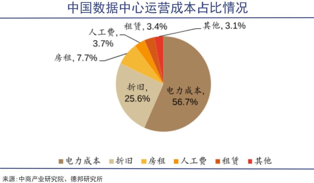 能源成本及冷却液是影响数据中心投资收益的关键变量,电力在运营中的成本接近六成。PUE(数据中心消耗的所有能源与IT负载消耗能源的比值)是衡量单位效能的核心指标,比值越接近1,意味着更少的能源浪费在制冷等非IT系统上,说明运营效率和绿色化水平越高。