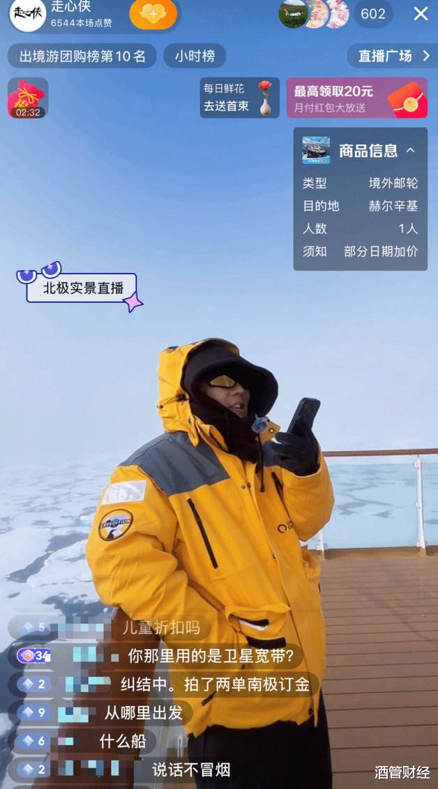 他们在今年7月16日开启北极邮轮直播。用户可以通过他们的直播间即时看到北极熊活动、冰川融化,以及冰山崩溃发出的巨大的响声。这种声临其境的感觉,给粉丝带来了极强的现场冲击感,即便销售的是非常昂贵的产品,同样吸引了很多人当场下单。