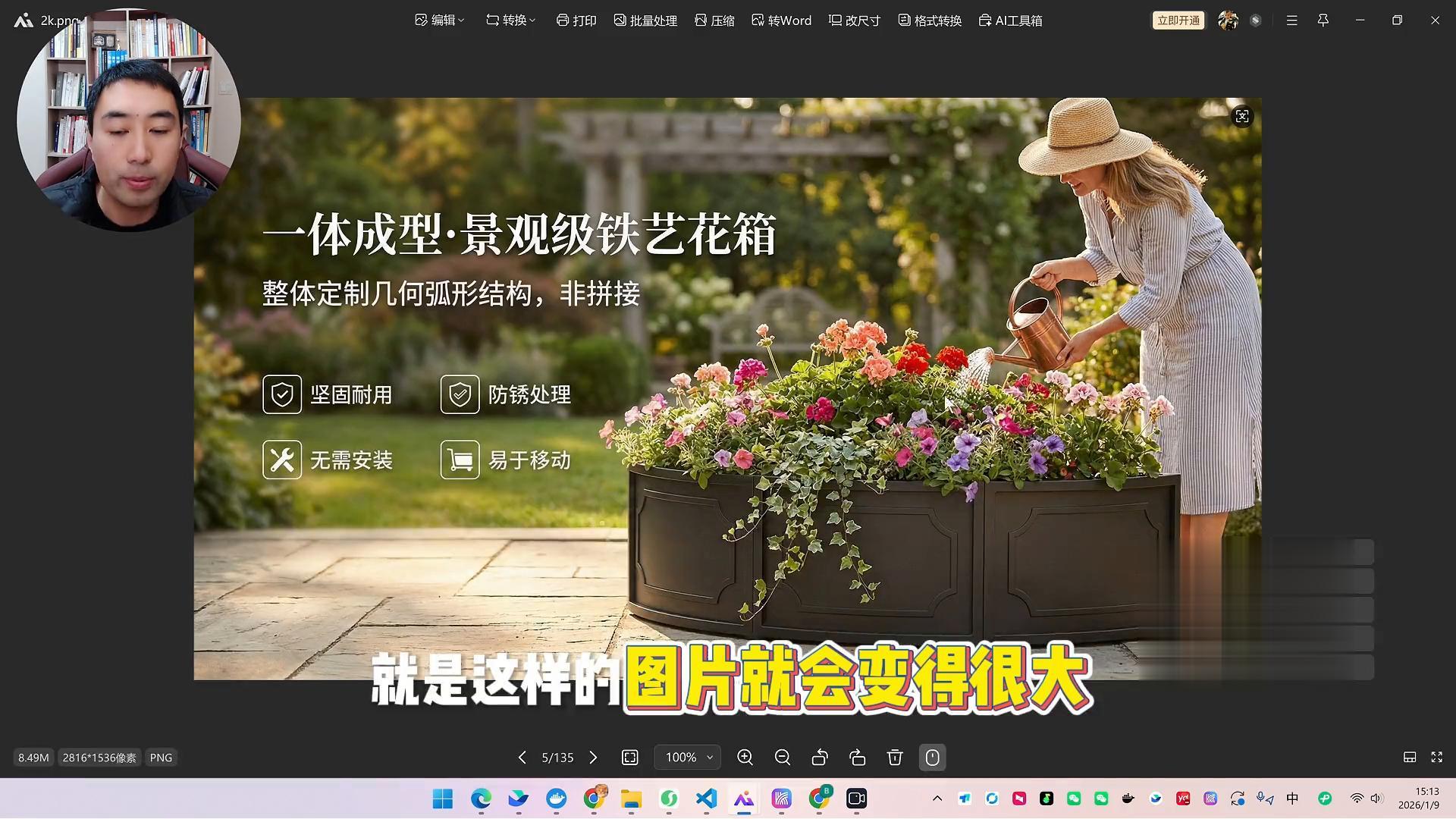 首先来说你的提示词,无论写的是4K还是8K,使用Gemini里面的Nano Banana Pro生成的图片都是1K或者是2K的。为什么是1K或者是2K的?因为生成这个图片,如果右键图片另存为,那么它保存出来的图片质量就是1K的。大家来看一下,就是这样展示的一个效果,图片很小,右下角可以看到它最大是1024,也就是1K的。