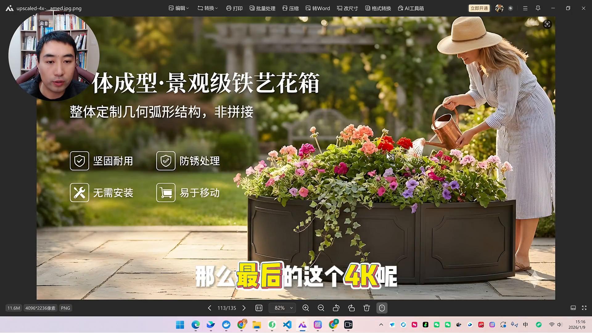 最终生成的效果是什么?给大家来看一下。最后的4K大家可以看到图片是更大的,细节是更精致的,并且你看左下角这个分辨率是4K的,这样就实现了曲线救国了。