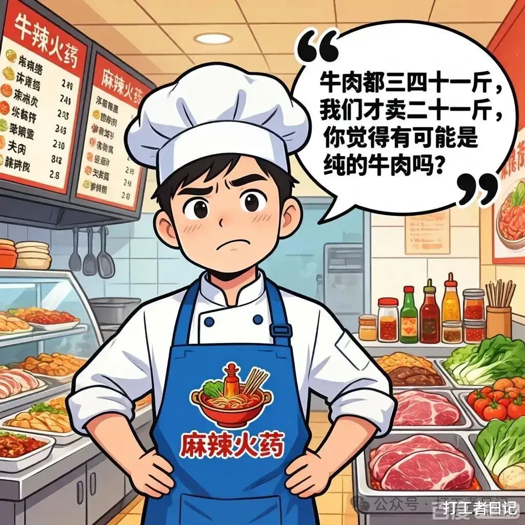 某麻辣烫员工:“牛肉都三四十一斤,我们才卖二十一斤,你觉得有可能是纯的牛肉吗?”好家伙,还以为挂羊头卖狗肉是个玩笑话的调