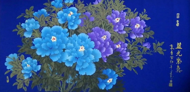 清新脱俗、富贵天香、花色大美的牡丹花成为聂兰花永恒演绎的经典,正应了“庭前芍药妖无格,池上芙蕖净少情。惟有牡丹真国色,花开时节动京城。”丰富的故事寓于画中,处处表现了花开时节的灿烂美好,洋溢着蓬勃的生命力和对生活的美好祝愿。