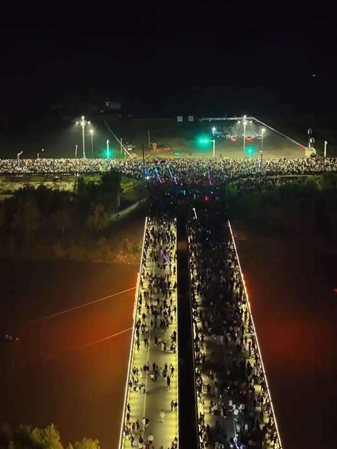 不用震惊,也无需怀疑 —— 当中秋的月色与国庆的红旗相遇,霍邱工农兵大桥便成了这座城市最热闹的 “打卡地”。双节长假期间,这里没有平日里的车流穿梭,取而代之的是摩肩接踵的人群,一眼望去,满是攒动的身影,仿佛整个霍邱的烟火气都汇聚在了这座桥上。
