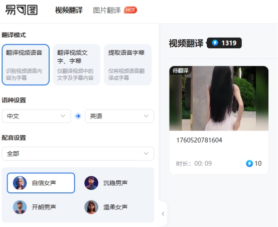易可图是一款专注于电商领域的AI设计平台,同时也提供了视频翻译功能,它把复杂难懂的视频本地化任务变成了一键式操作,并且提供了高自由度的的参数设置,让最终输出的视频能符合你的要求。