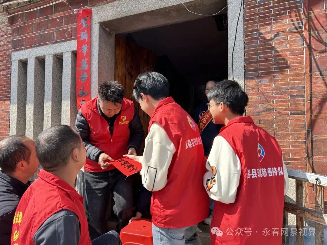 与此同时,大家纷纷拿起春联和福字,认真地为群众张贴在门楣上,红彤彤的春联不仅装点了家门,更点亮了困难家庭的希望。“贴上春联,年味儿就浓了,心里也暖烘烘的,太感谢你们了!”一位老人看着崭新的春联,眼角泛起感动的泪花。