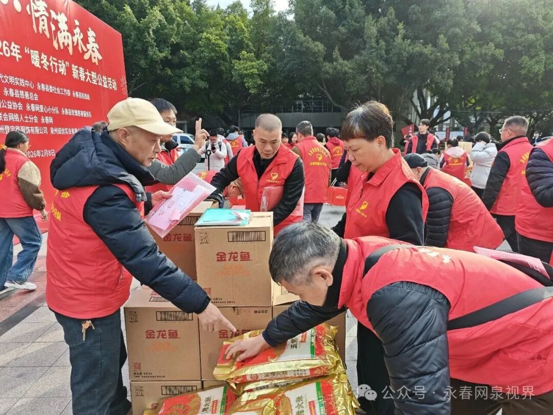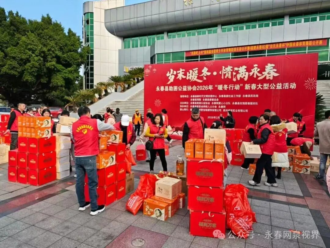 温情暖冬,爱满永春!2月8日,在永春县新时代文明实践中心、永春县委社会工作部、永春县民政局、永春县残联、永春县慈善总会的联合指导下,一场承载着关爱与希望的2026年“暖冬行动”新春大型公益活动温情启幕。本次活动由永春县助困公益协会、永春网爱心小分队、永春县玫瑰慈善服务队共同主办,永春县新联会网络人士分会、永春网协办,福建省泉州市登宝路服饰有限公司、泉州成信实业有限公司鼎力赞助。