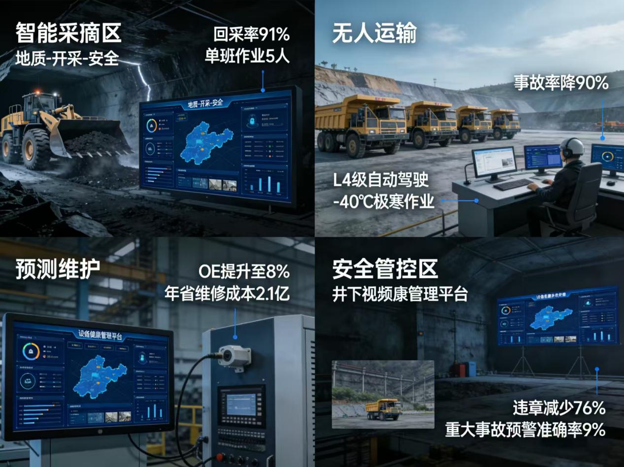 设备故障是矿山非计划停机的主因。AI通过振动、温度、油液等多维度数据融合分析,可提前30天预测设备劣化趋势。陕煤集团应用的“设备健康管理平台”,集成10万+传感器数据,利用深度学习算法识别轴承磨损、液压系统泄漏等故障模式,使设备综合效率(OEE)从68%提升至85%,年减少维修成本1.2亿元。