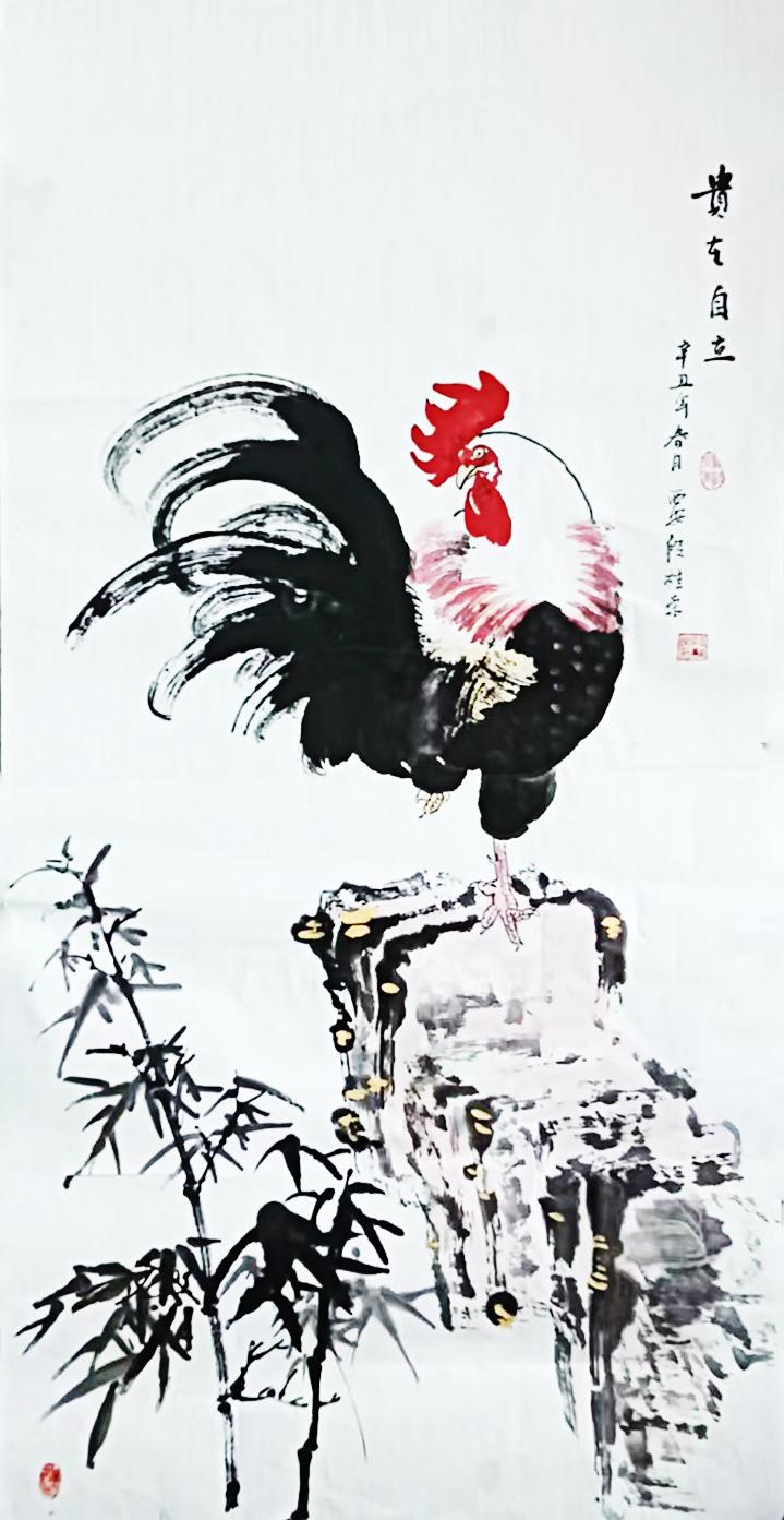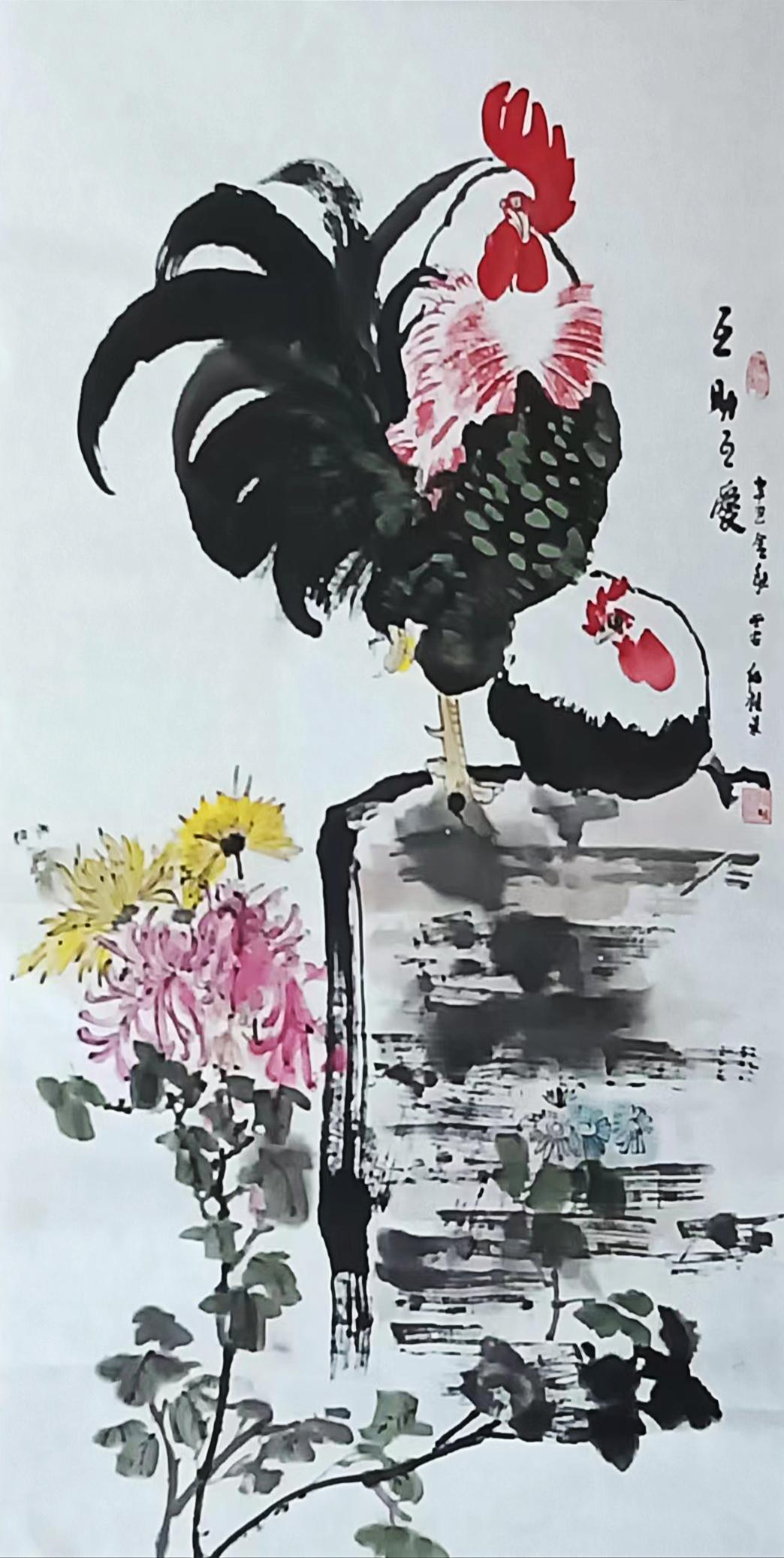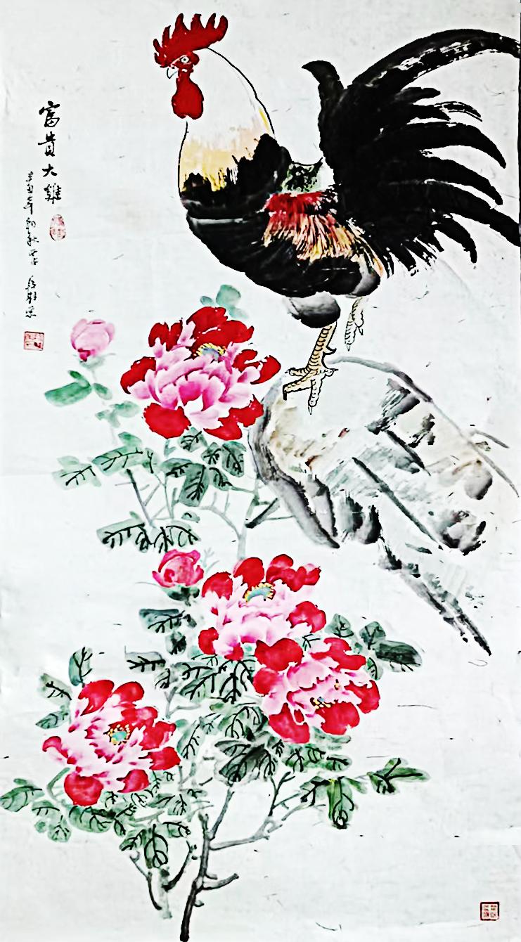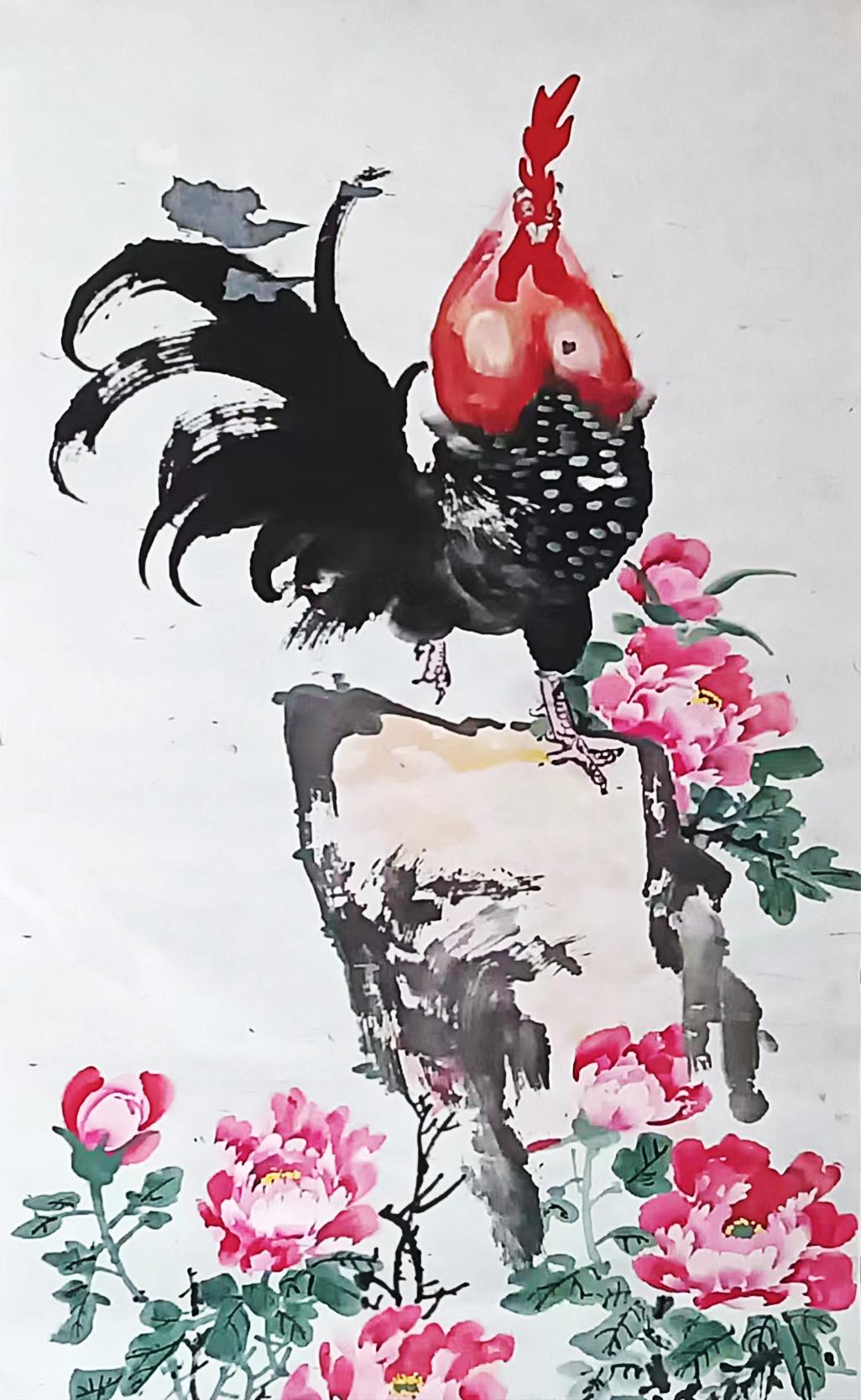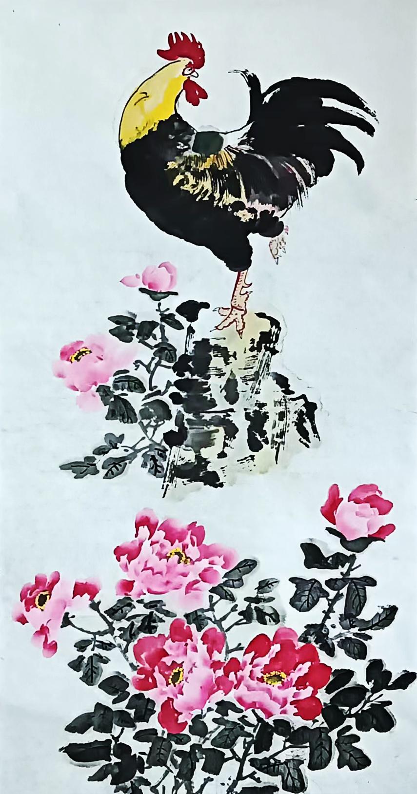 现在他老了,把手艺传给下一代,专心从事绘画创作,由于生在农村,他画的鸡、牡丹、别具风格,受到大众的欢迎。他画的鸡由于具有写实性很有生活气息,深受大家的喜爱。