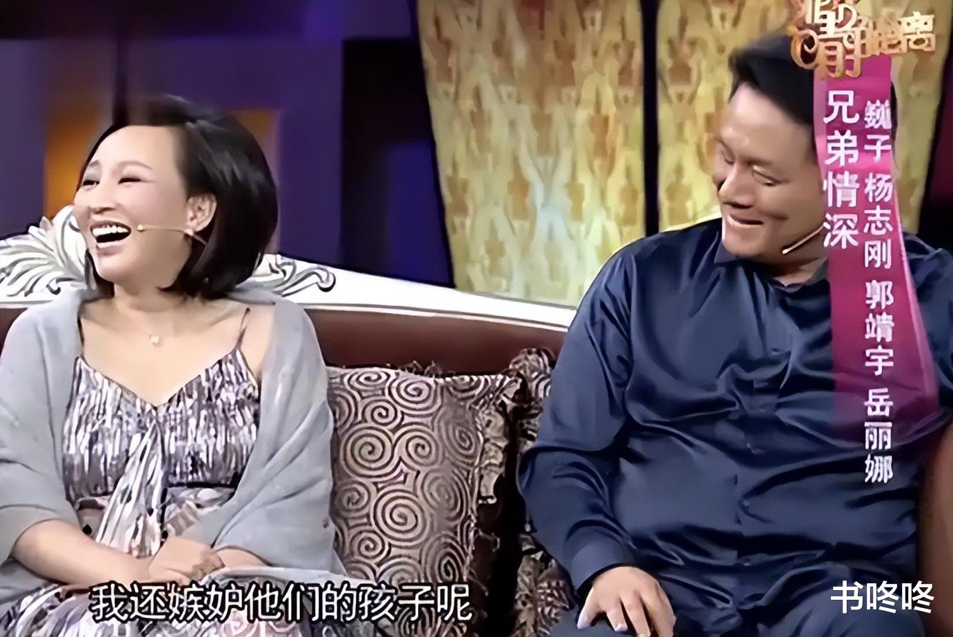 在《非常静距离》的时候,岳丽娜说自己最开始会吃杨志刚的醋,郭靖宇天天把他带在身边,打牌也会特别照顾让弟弟赢,自己出个三,让杨志刚出个四,把她憋家里了。
