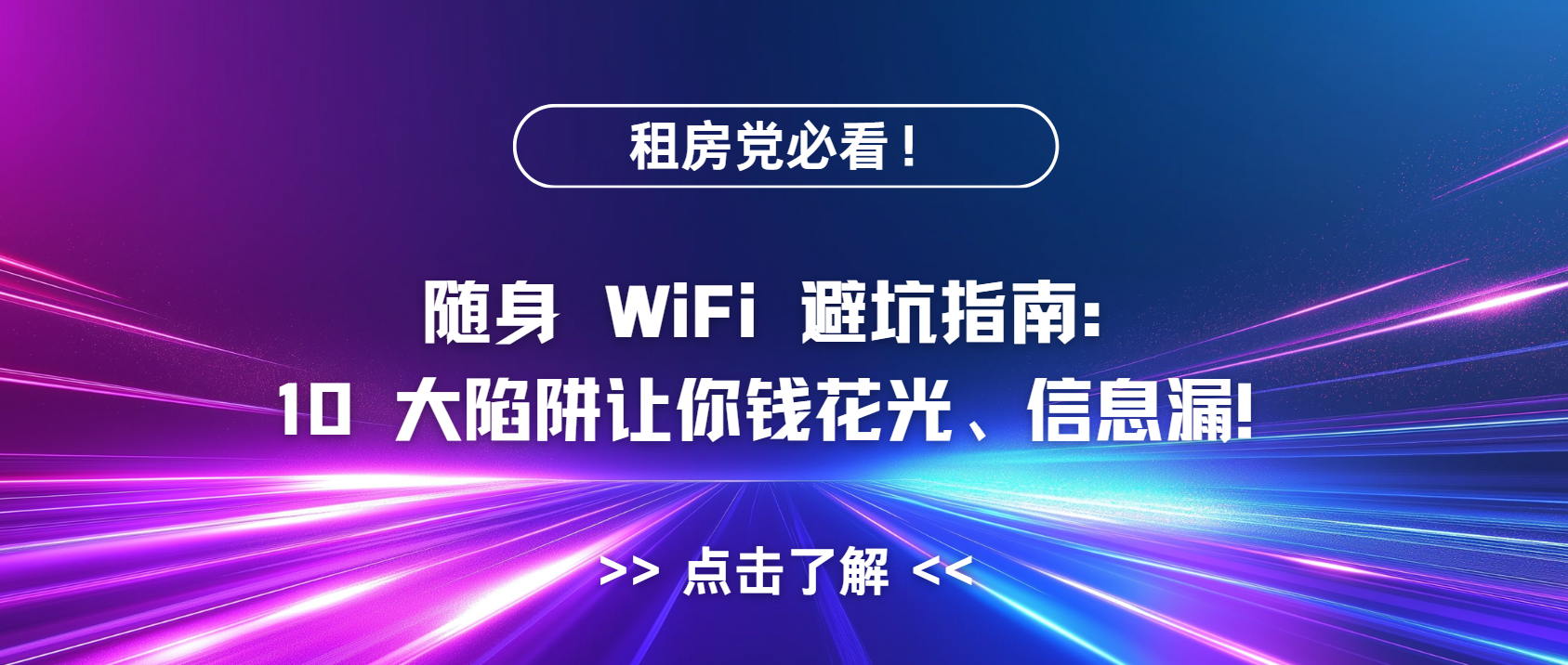 出差通勤图方便、租房办公图省钱,不少人把随身 WiFi 当成 “上网神器”,却不知背后藏着一堆坑:信息被盗卖、网速打骨折、预存款蒸发… 今天扒光随身 WiFi 的 10 大陷阱,看完再买不踩雷!