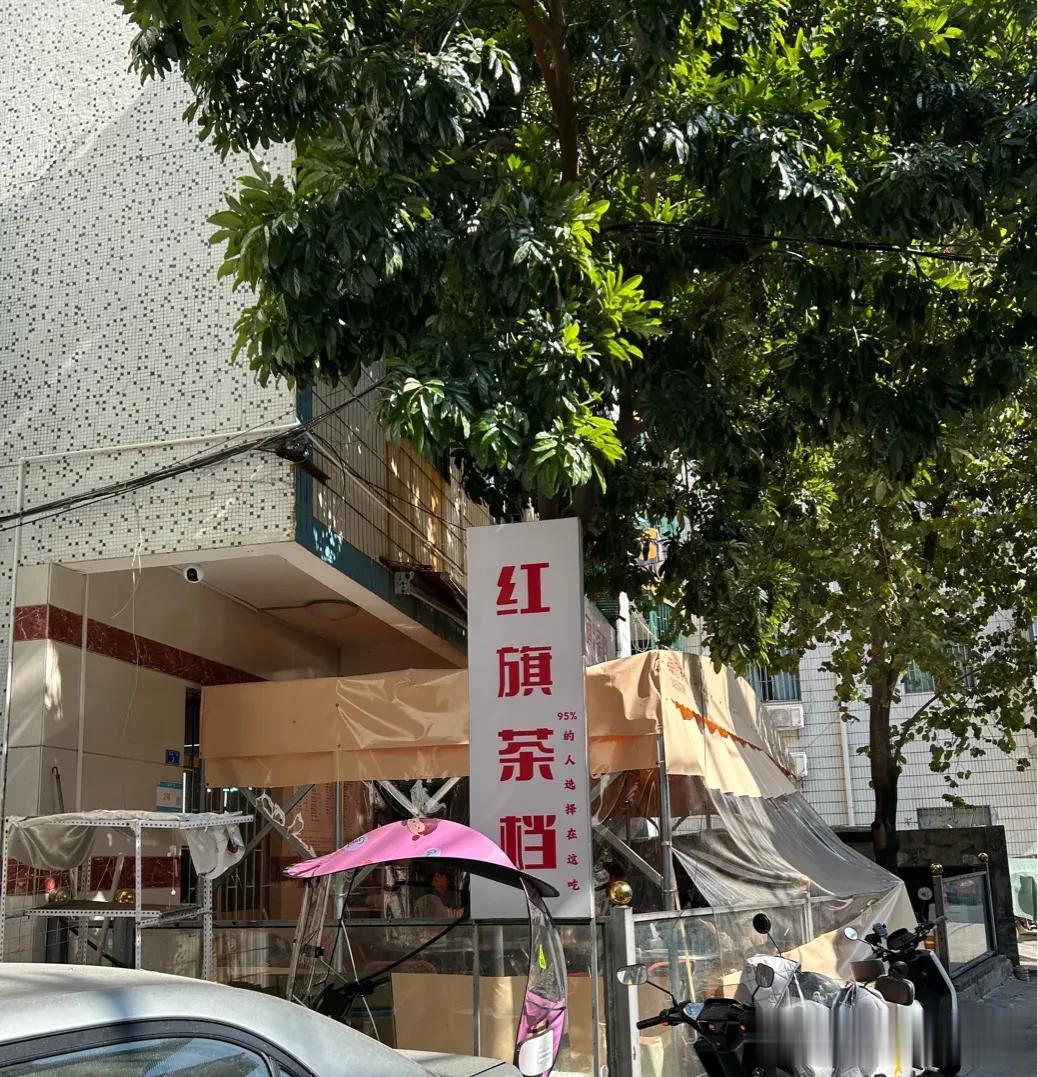 这是来到惠州的第五天,我们五口人是专程去他家吃的,走的时候我特意拍了他家的招牌,叫红旗茶档,根本不起眼的那种,隐藏在大树下,如果不仔细看,根本看不见它的存在。