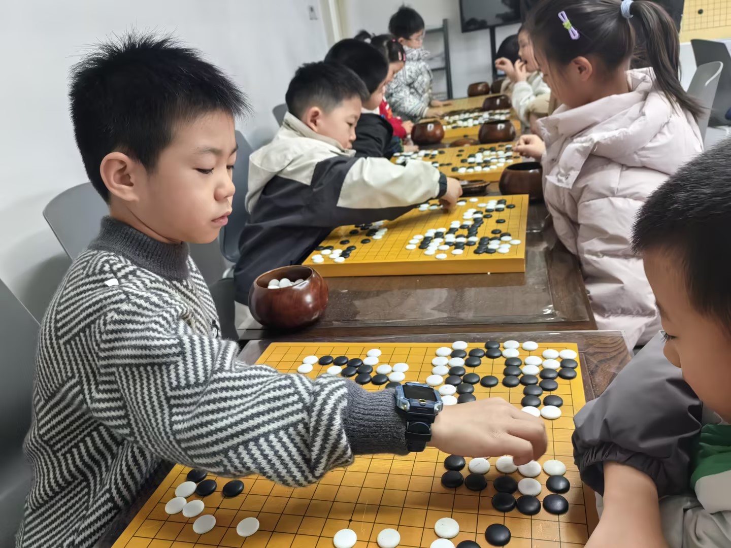 破局第四步:做好陪伴,让围棋成为亲子互动的纽带。很多孩子抵触围棋,是因为觉得学围棋是“一个人的事”,枯燥又孤独。家长可以主动参与进来,陪孩子一起学棋、一起对弈,不做“监督者”,只做“陪伴者”。哪怕家长不懂围棋,也可以陪着孩子一起玩围棋小游戏、一起看围棋相关的动画(比如《棋魂》),一起讨论简单的棋局,让围棋成为亲子互动的纽带。当孩子感受到,学围棋是一件有人陪伴、有人分享的快乐事情,自然就会放下抵触,慢慢产生兴趣。