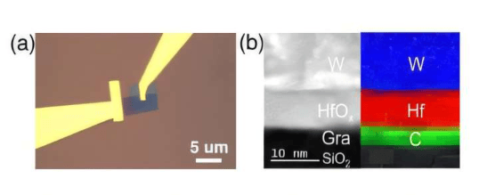 该设备是一种忆阻器,由论文第一作者赵健使用钨、氧化铪陶瓷和石墨烯构建,形成微小的“三明治”结构。在700摄氏度下,该高温存储芯片无需刷新即可保持数据超过50小时,承受超过十亿次开关循环,仅需1.5伏电压,操作速度达数十纳秒。