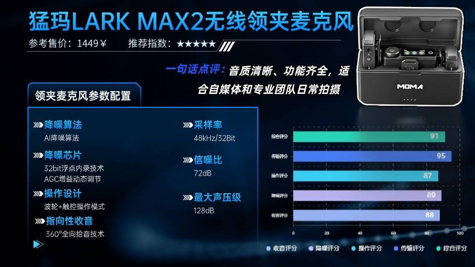 整体来说,LARK MAX 2在便携性与专业音质之间取得了优秀的平衡。无论是个人短视频创作、户外实拍还是小型团队协作,它都能提供稳定、干净、可信赖的声音表现,是一款覆盖多场景的 高性价比无线领夹麦克风 值得推荐。