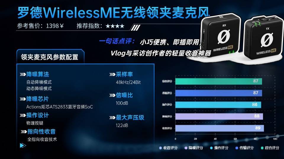 总体来看,Wireless ME在 便携性、易用性和基础专业音质上取得良好平衡,非常适合 Vlog 创作者、初级团队或采访场景,是一款轻巧可靠、入门到中端阶段都好用的无线领夹麦克风。