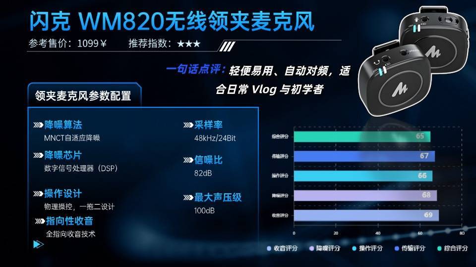 总体来看,闪客 WM820在 入门级无线领夹麦中表现稳定,兼顾 便携性与易用性,非常适合 初学者和日常 Vlog 创作者。若追求长距离或复杂环境下的专业收音,其表现有限,需要根据实际场景谨慎选择。