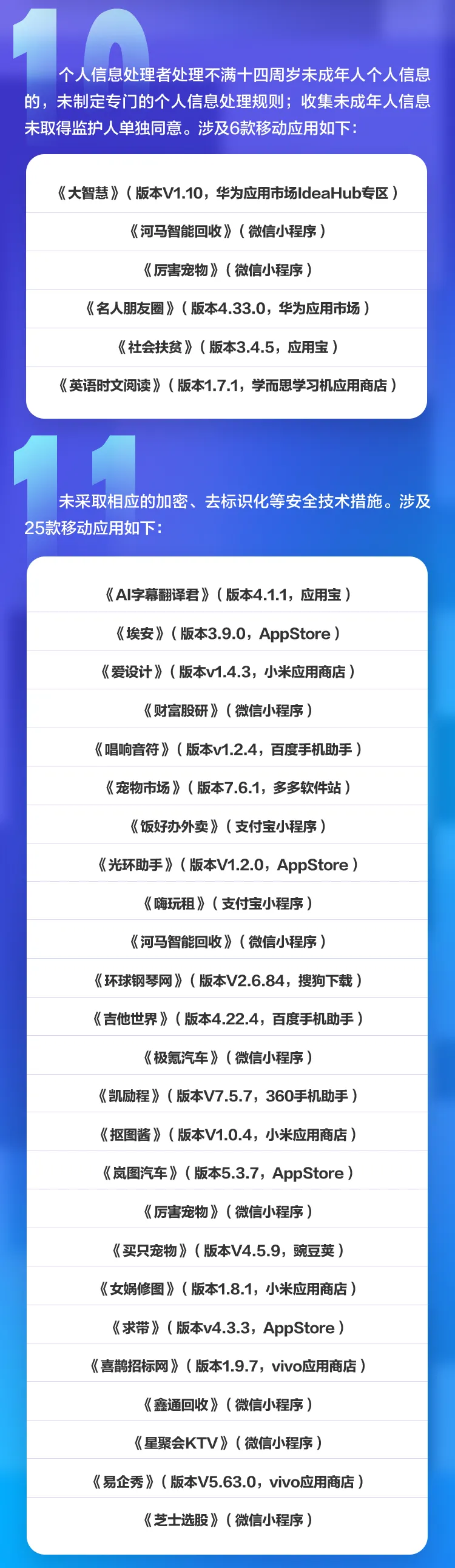 近日,国家计算机病毒应急处理中心检测发现72款移动应用存在违法违规收集使用个人信息问题,依据《网络安全法》《个人信息保护法》等法律法规予以通报。
