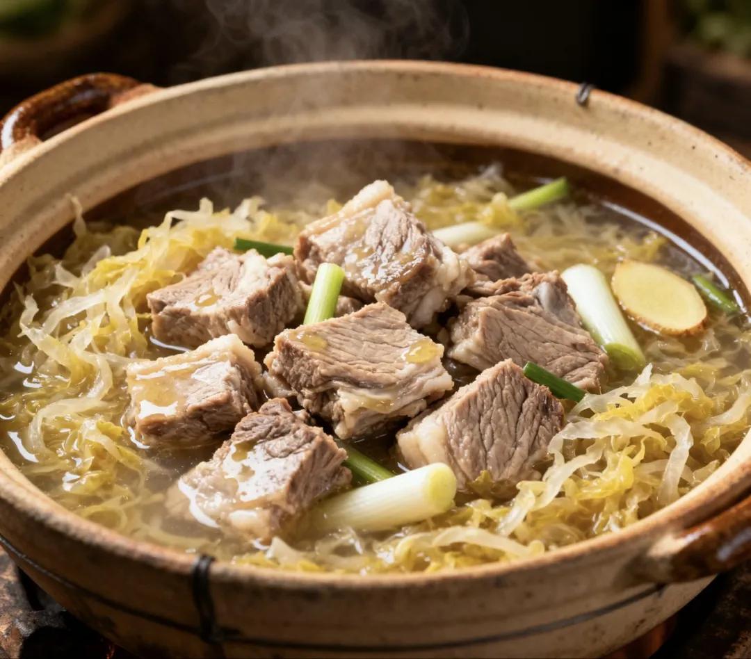 炖制时间,控制在20-30分钟,大火烧开后转小火慢炖,让酸味慢慢渗透,又不破坏酸菜的纤维结构。
