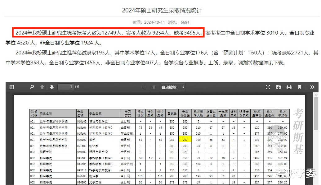 根据河南师范大学先前公布的数据,24考研河南师范大学共有12749人报考,实考人数9254人,过国家线人数为2743人,过线率29.64%,过线率比深圳大学还要更低一点。