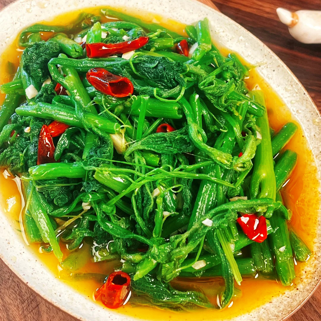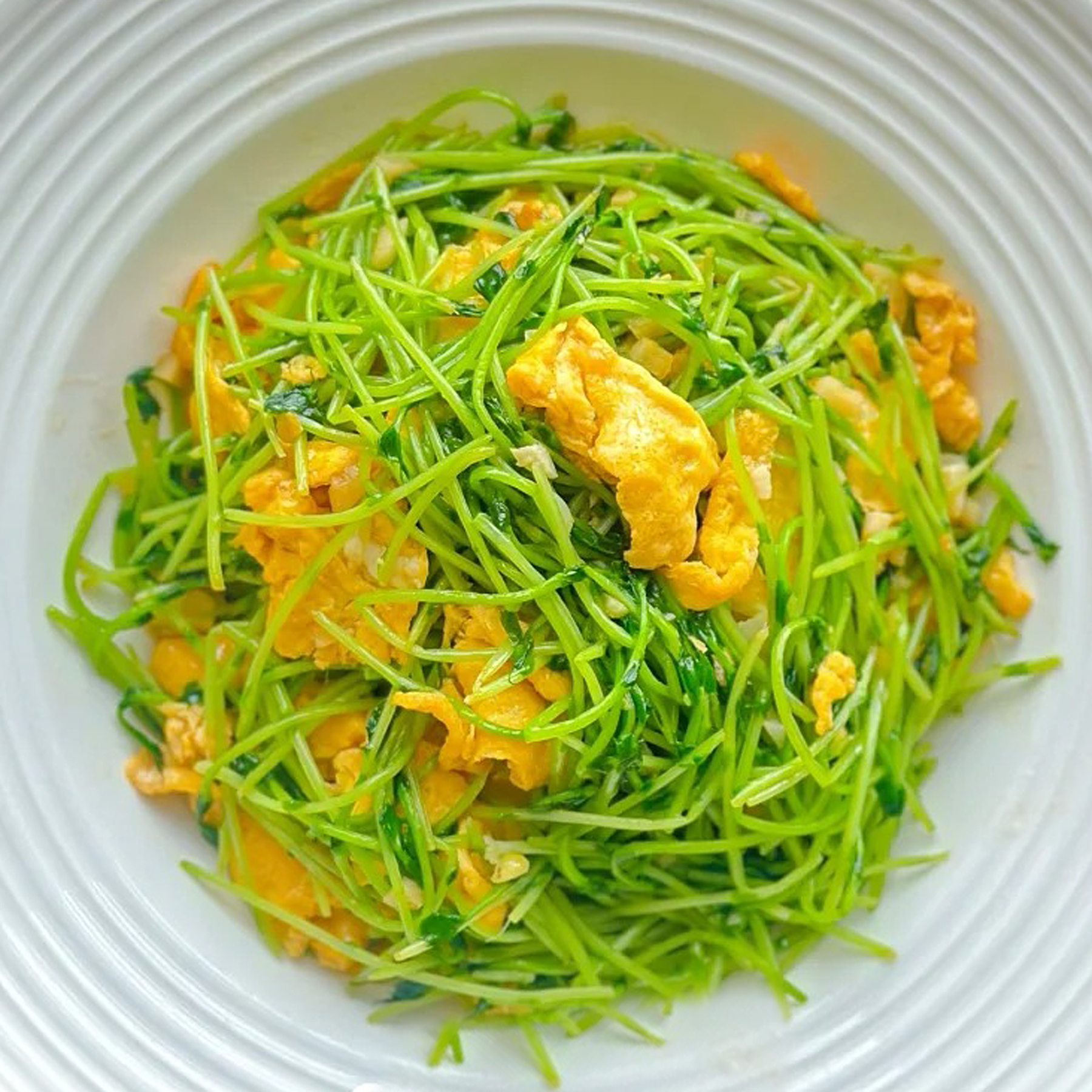 ✅ 亮点:谷雨时节的豌豆苗脆嫩清甜,正当季。搭配鸡蛋快炒,黄绿相间,清爽又下饭。豆苗富含维C和膳食纤维,清热助消化;鸡蛋提供优质蛋白,营养更均衡。不勾芡、不加水,大火翻炒几十秒就出锅,锁住水分和香气,低脂又解腻。