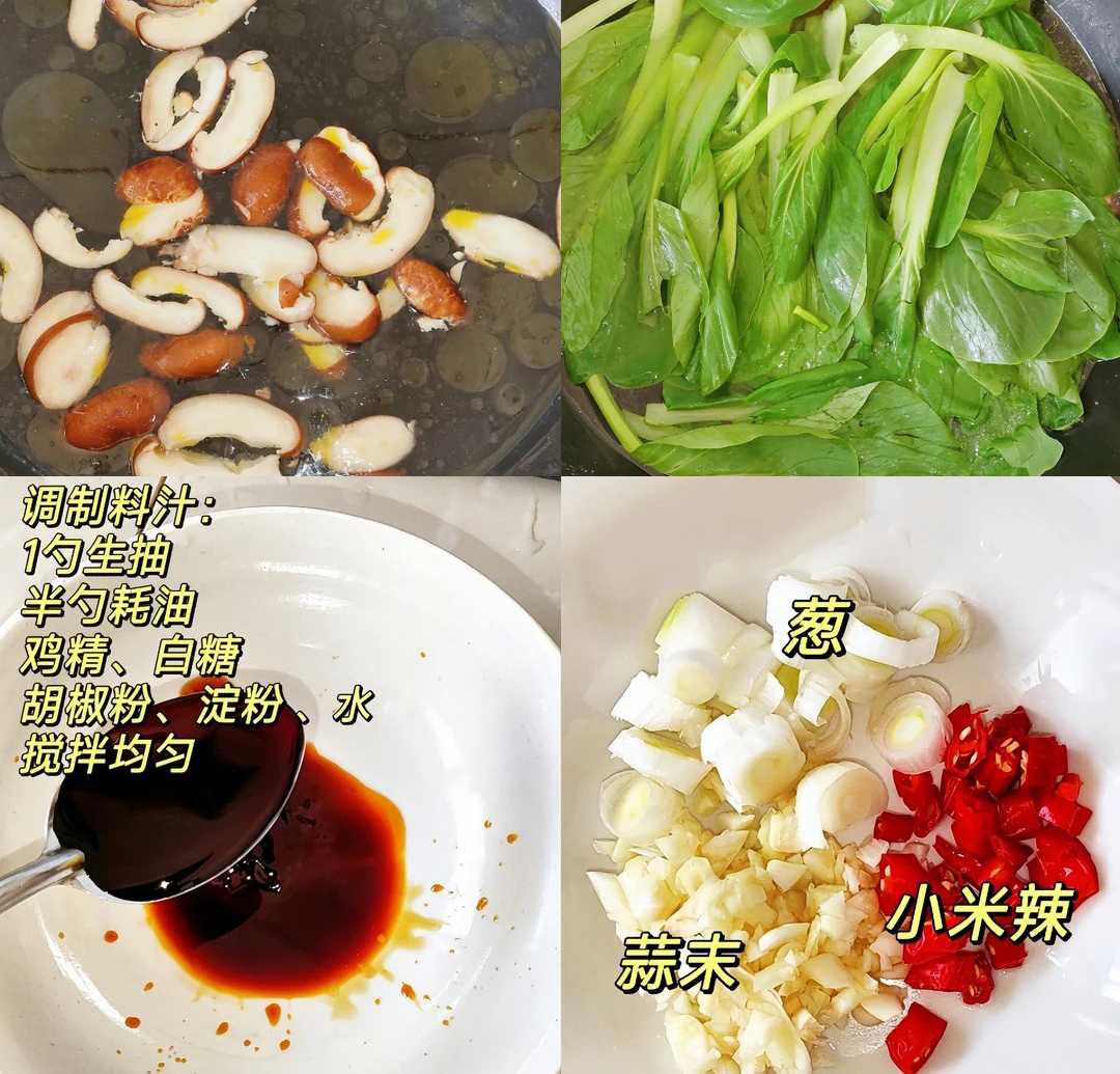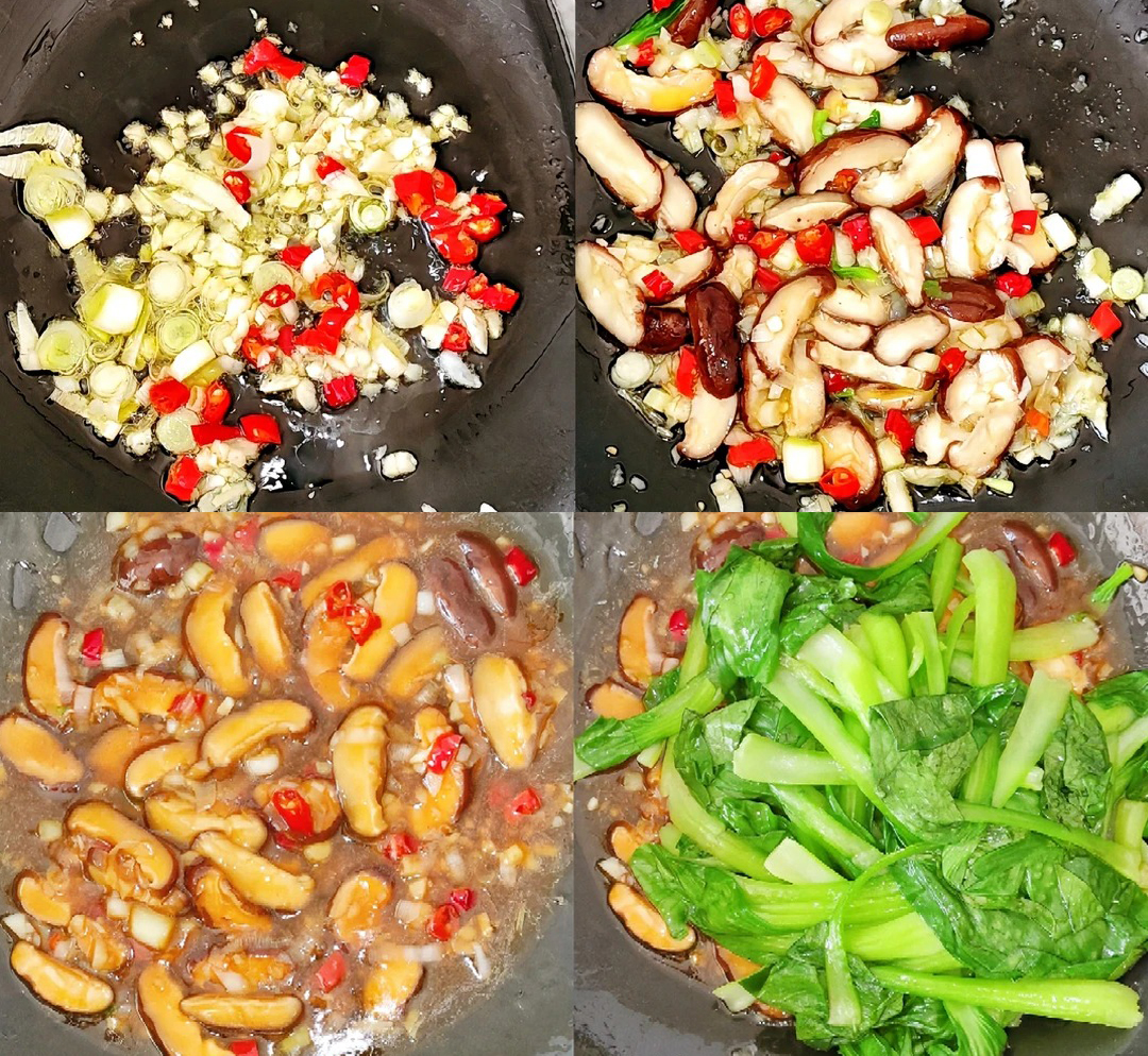 食材:香菇、小青菜、蒜末、葱、小米辣(可不要)
