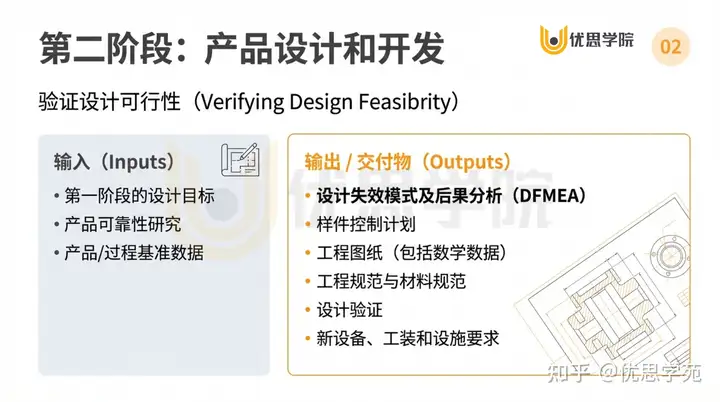 此阶段产品图纸接近于最终状态(数据冻结),产品的几何尺寸、设计特征、公差等基本确定并通过正式的设计评审 Design review;并通过制造样件 Prototype 来装车验证设计意图是否达到。此阶段用到的工具包括:DFX(面向 X 的设计)、DFMEA(设计 FMEA)、DVP&R(Design Verification Plan and Report)等。