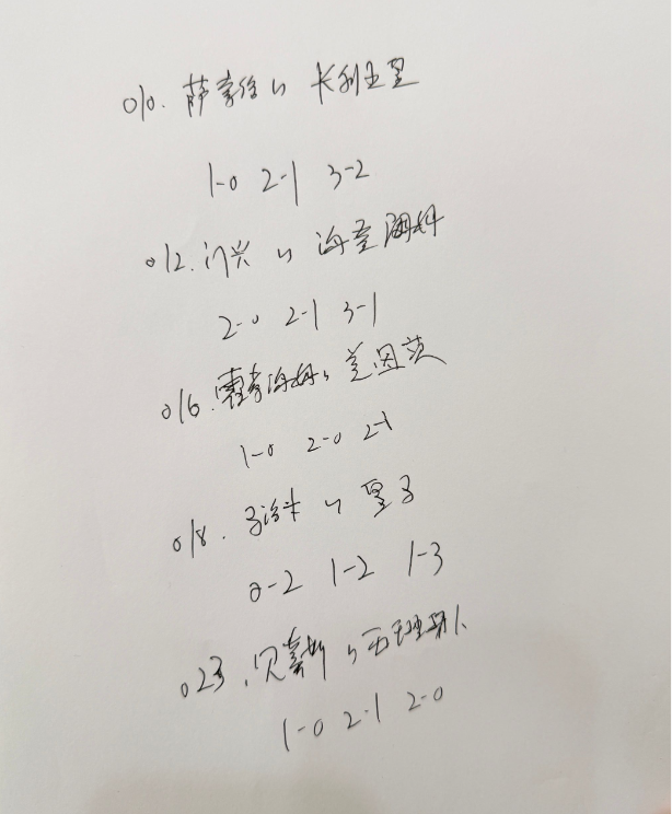 (1-2,1-3,0-2)方向:主负进球:2.3.4,半全场:负负思路:皇马和巴萨也仅差4分,球队依旧有夺冠的希望,本场面对鱼腩球队,肯定不会放弃拿下三分的机会,我看好皇马大胜!姆巴佩自带一球的属性,所以大家不要担心,直接做胆就行了。因为球队不缺战意,要争夺冠军!