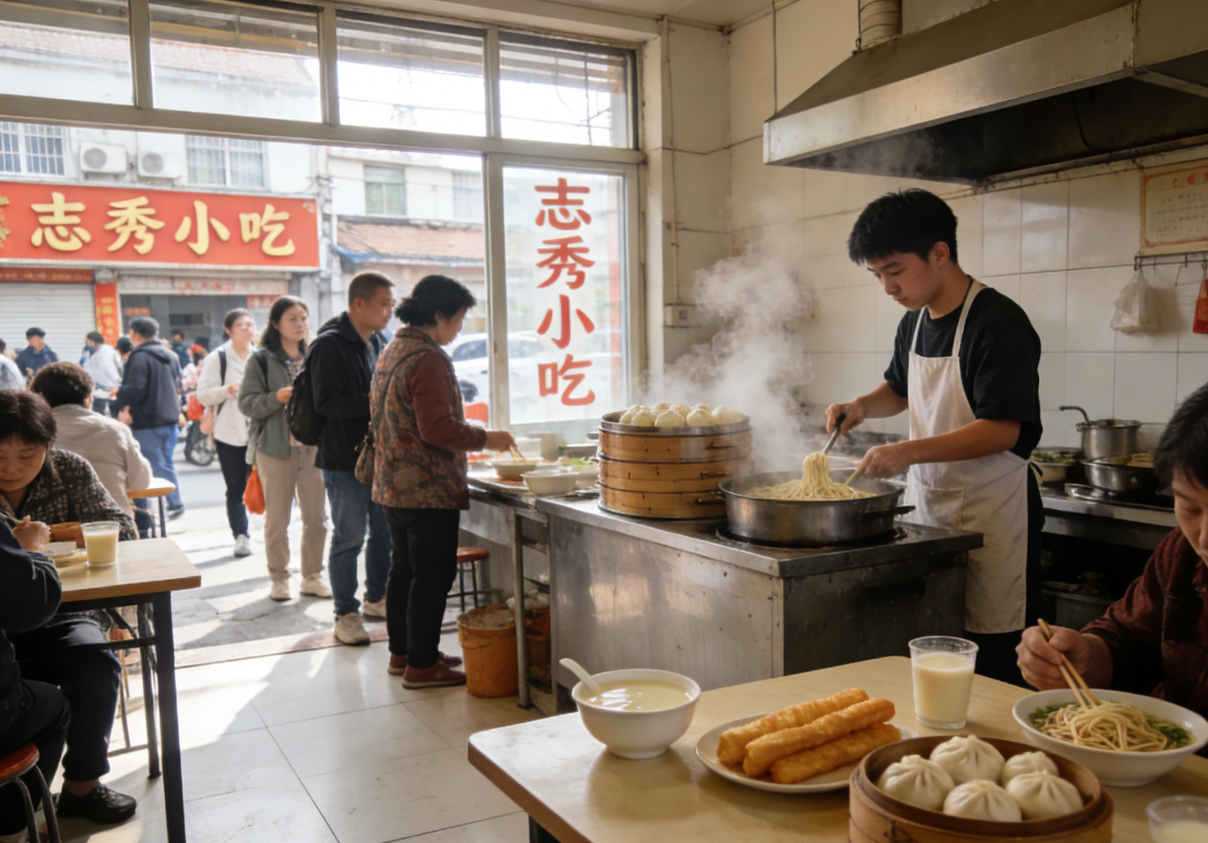 弟弟的早餐店,叫“志秀小吃”,取了他名字里的“志”,和我名字里的“秀”。