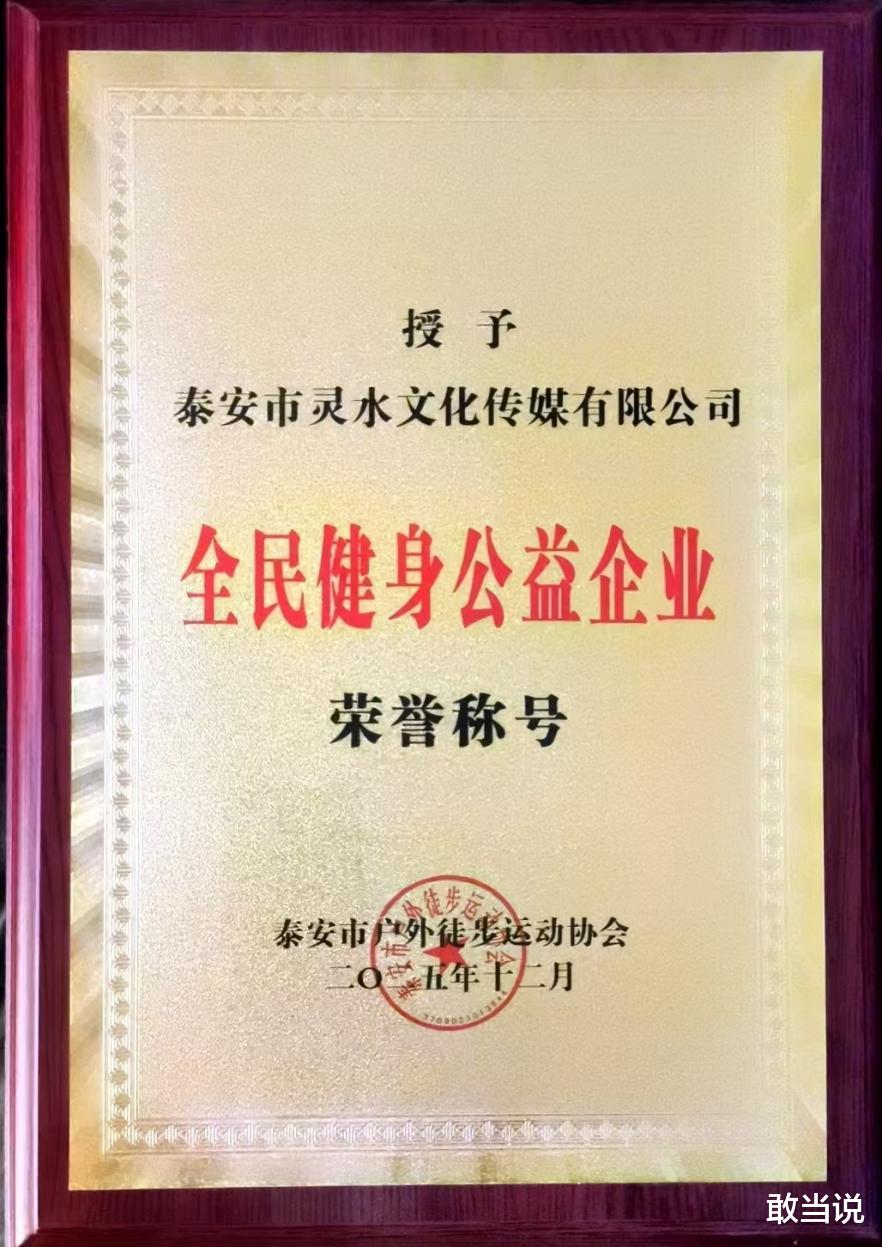 近日,泰安市灵水文化传媒有限公司获泰安市户外徒步运动协会授予的 “全民健身公益企业” 荣誉称号,这是对其助力本地全民健身事业的官方肯定。