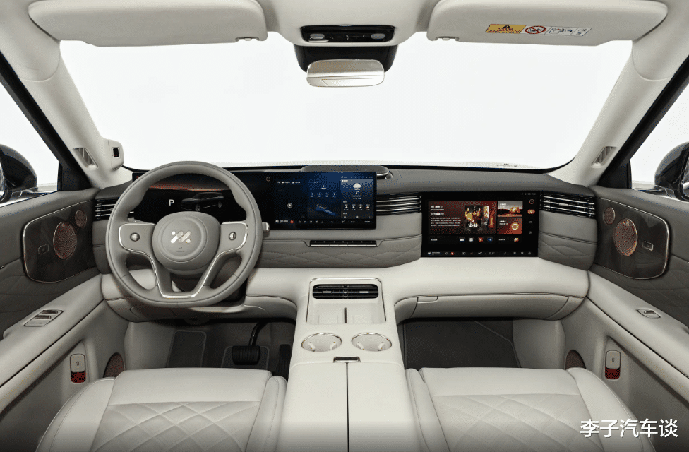 另外,在科技配置方面,智己LS9的表现也是比较优秀的。比起市面上的竞争对手,这款车型在中控台上搭载了27.1英寸的高清中控屏,并且为副驾驶乘客提供了15.6英寸的娱乐屏,驾驶员控制车辆、副驾驶娱乐都不受影响。在智己LS9第二排和第三排的乘客,也能通过21.5英寸的吸顶屏幕观影、K歌,在旅途中不会无聊。只是大家需要注意,智己LS9并没有为用户提供流媒体外后视镜,一旦其后排吸顶屏降下,驾驶员就很难关注后方的情况了,安全性会受到一定影响。不过智己LS9标配激光雷达等高精度感知硬件,为用户提供了L2级智能驾驶辅助系统,通过各种辅助驾驶功能,又优化了出行安全系数。