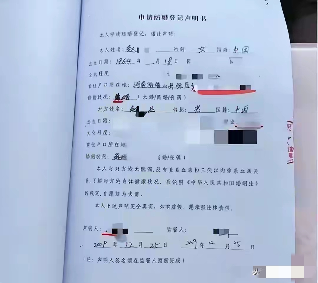 2009年12月,在赵芳去世整整一年后,舅舅竟与“已故姐姐”办理了结婚登记。