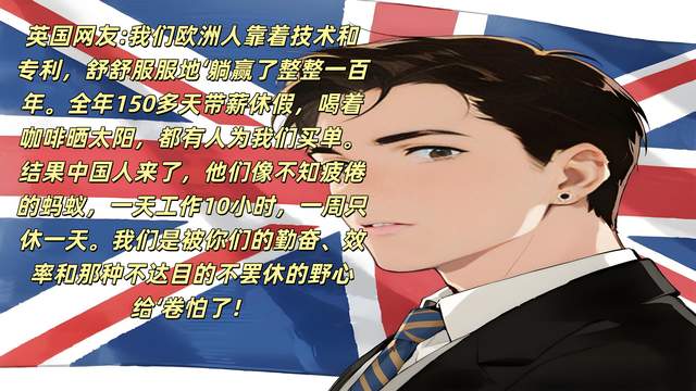 一位英国网友的语气则充满了被打破安逸的委屈和愤怒:“我们欧洲人靠着技术和专利,舒舒服服地‘躺赢了整整一百年。全年150多天带薪休假,喝着咖啡晒太阳,都有人为我们买单。结果中国人来了,他们像不知疲倦的蚂蚁,一天工作10小时,一周只休一天。我们是被你们的勤奋、效率和那种不达目的不罢休的野心给‘卷怕了!"