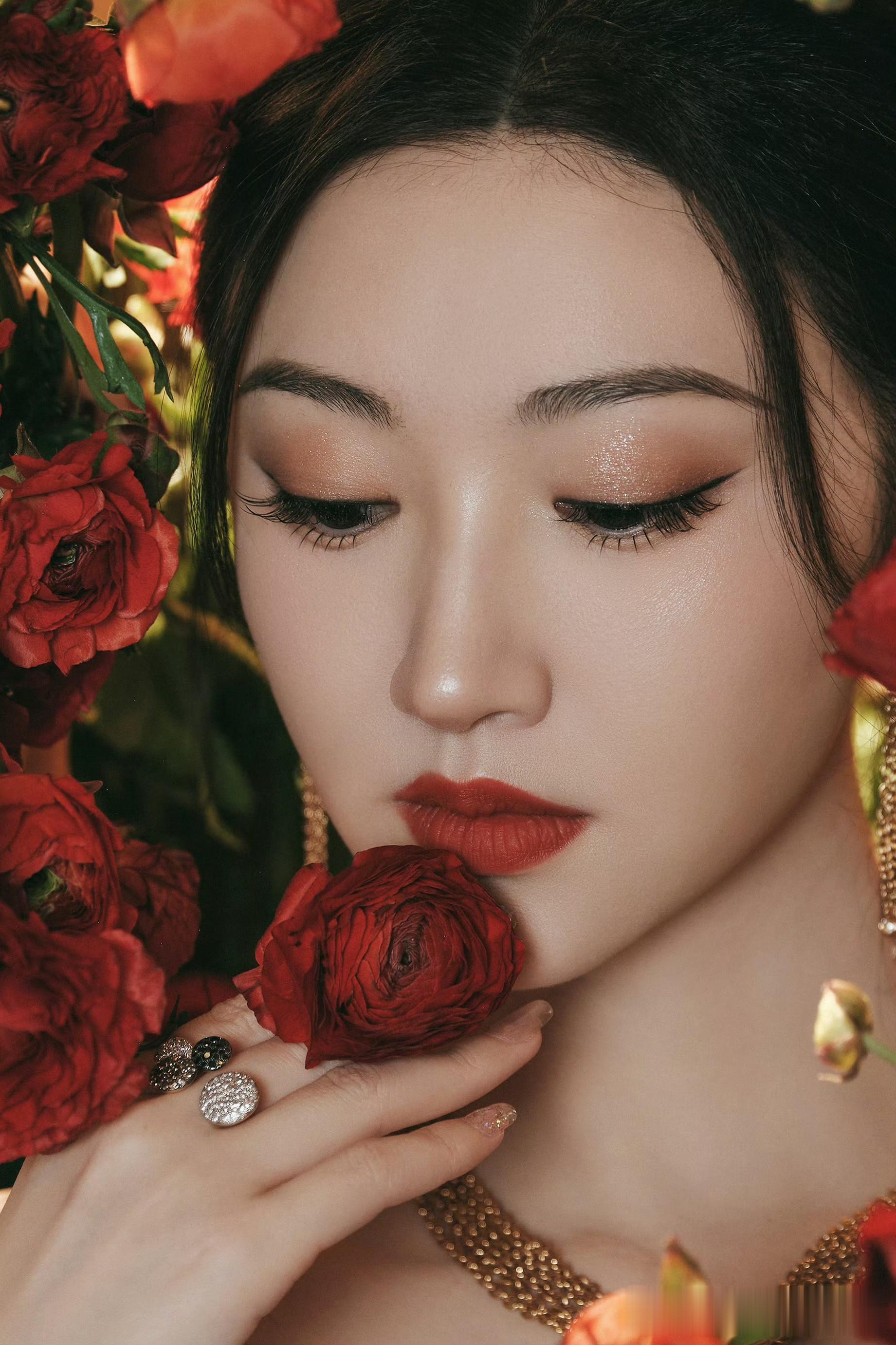 景甜古堡玫瑰女王景甜这波红毯杀疯了!烈焰红裙配公主头,手捧玫瑰站在光影里,古