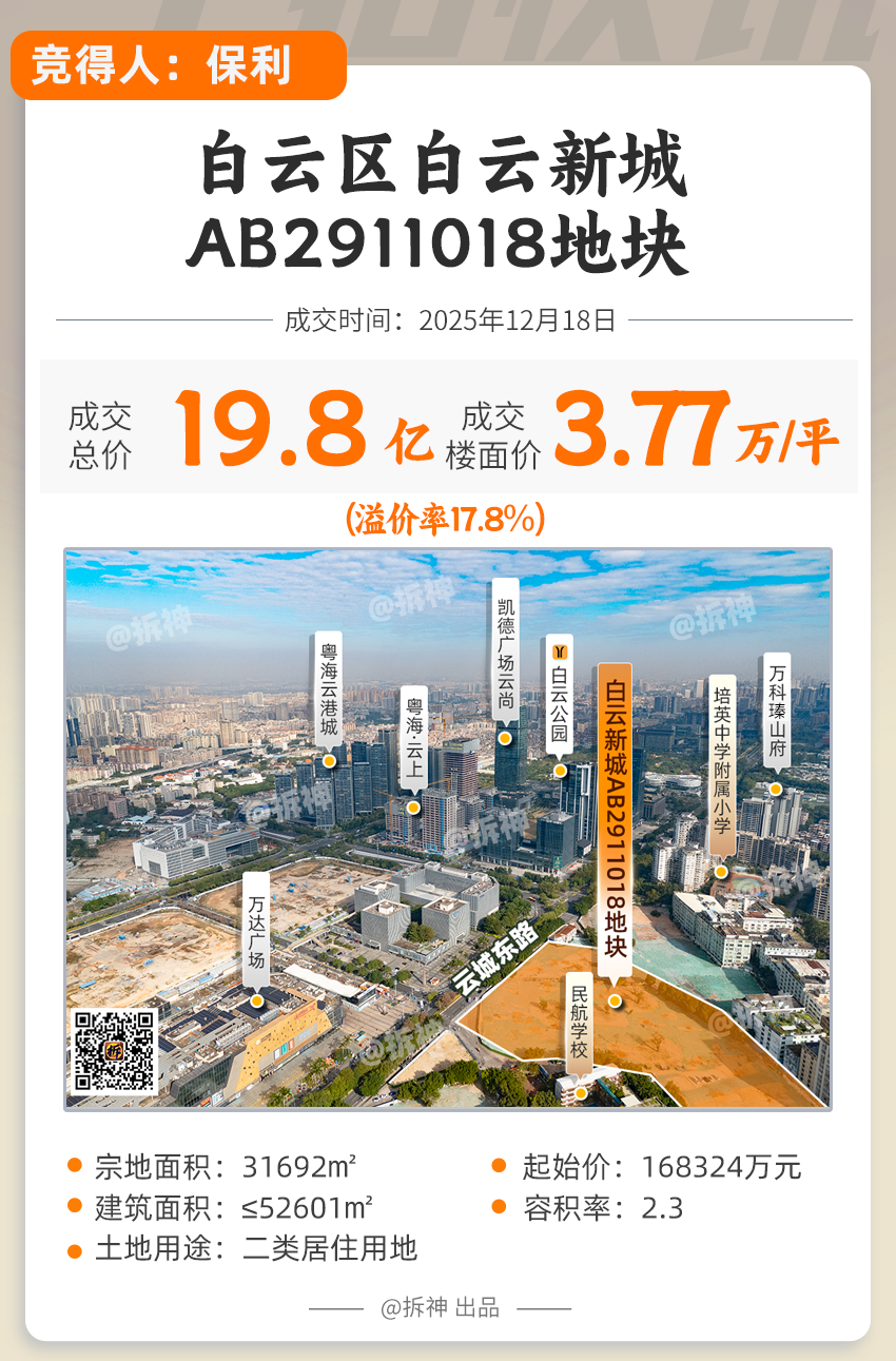 甚至,很多人忍不住回头,琢磨一块上个月刚刚出让的地块——保利白云新城AB2911018地块。