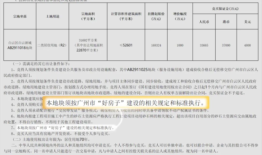 保利白云新城项目,恰恰是广州第一宗在土地出让公告中,就明确写入“好房子”建设标准的地块。