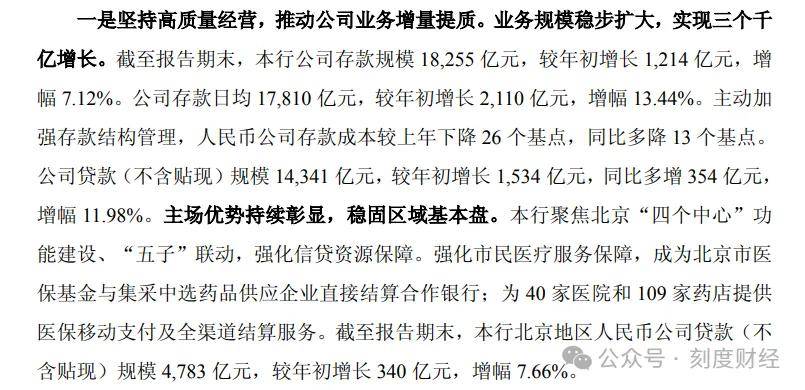 对公业务的稳健表现,是北京银行穿越周期的核心支撑。2025年前三季度,公司对公业务实现了“三个千亿增长”,截至9月末,公司存款规模18255亿元,较年初增长1214亿元,增幅7.12%。