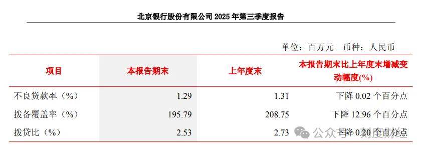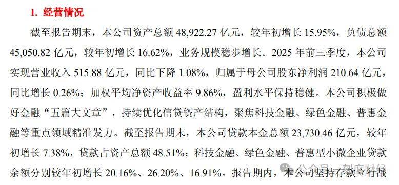 2025年第三季度,北京银行既有资产规模较年初增长15.95%、领跑上市城商行的扩张力度,归母净利润同比仅增0.26%、营收同比下滑1.08%的盈利压力。