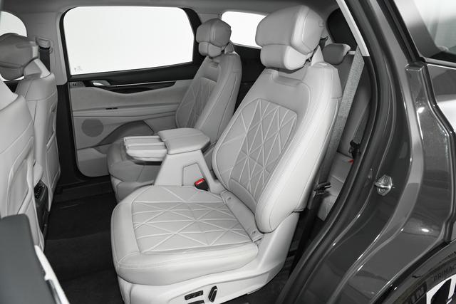 更贴心的是,二排中间预留了200毫米宽的过道,我侧身就能轻松通过,不用费力挪动座椅,就能走进第三排。这一点对家里有老人和孩子的家庭来说太友好了,进出第三排不用撅着身子翻座,体面又省心。我1米8的个头,钻进第三排坐直后,膝盖离前排座椅还有一点余量,头部也不会觉得压抑。虽然和二排的宽敞度没法比,但短途坐成年人完全没问题,不用再把第三排当成“应急小板凳”,真正实现七座都能用。